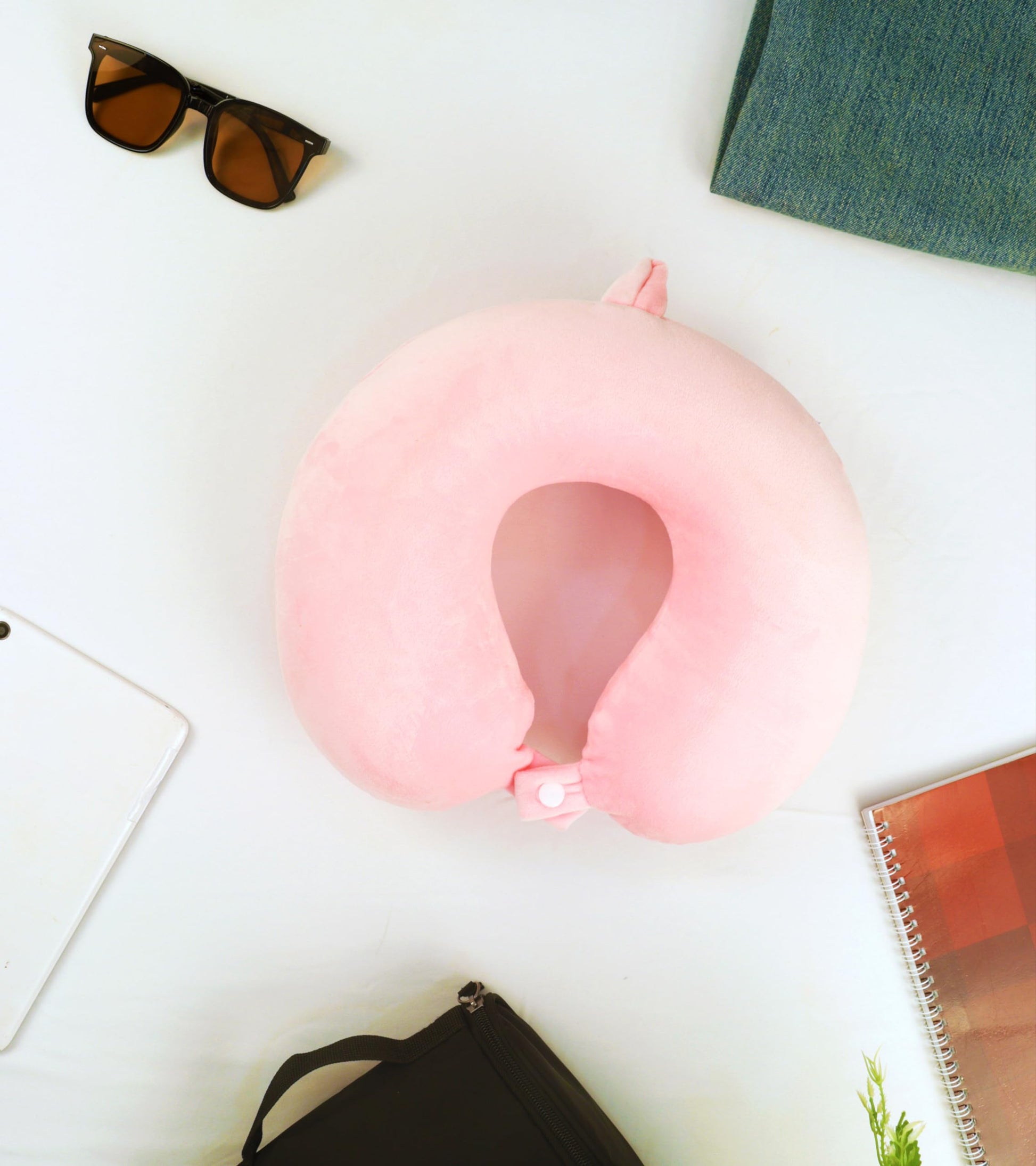Cushy® Travel Neck Pillow with 360-Degree Head Support - Memory Foam Luxury Soft Pillow for Sleeping Rest - Home Travel Airplane Car - Plain, Peach Pink