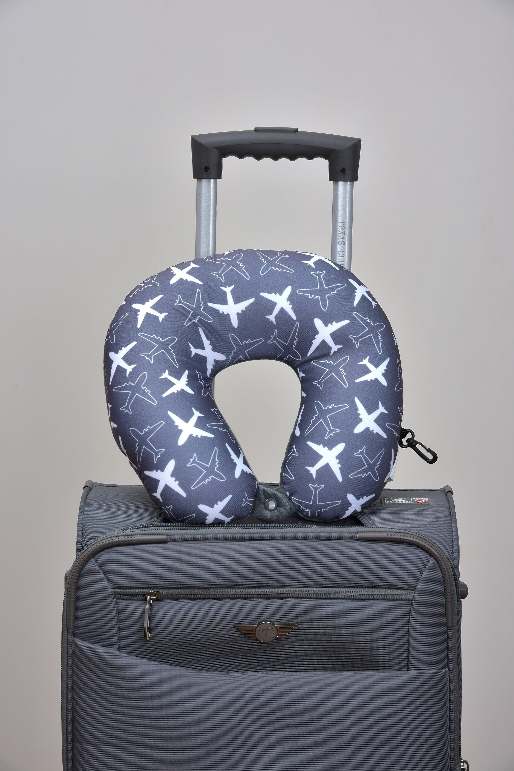 Cushy® Travel Neck Pillow with 360-Degree Head Support - Micro Beads Luxury Soft Pillow for Sleeping Rest - Home Travel Airplane Car - Printed, Grey