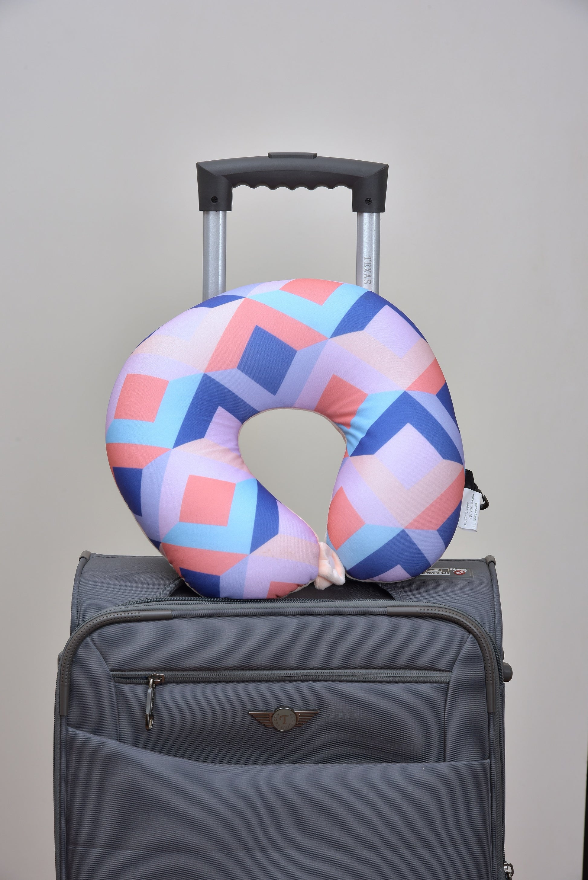 Cushy® Travel Neck Pillow with 360-Degree Head Support - Micro Beads Luxury Soft Pillow for Sleeping Rest - Home Travel Airplane Car - Printed, Multicolor