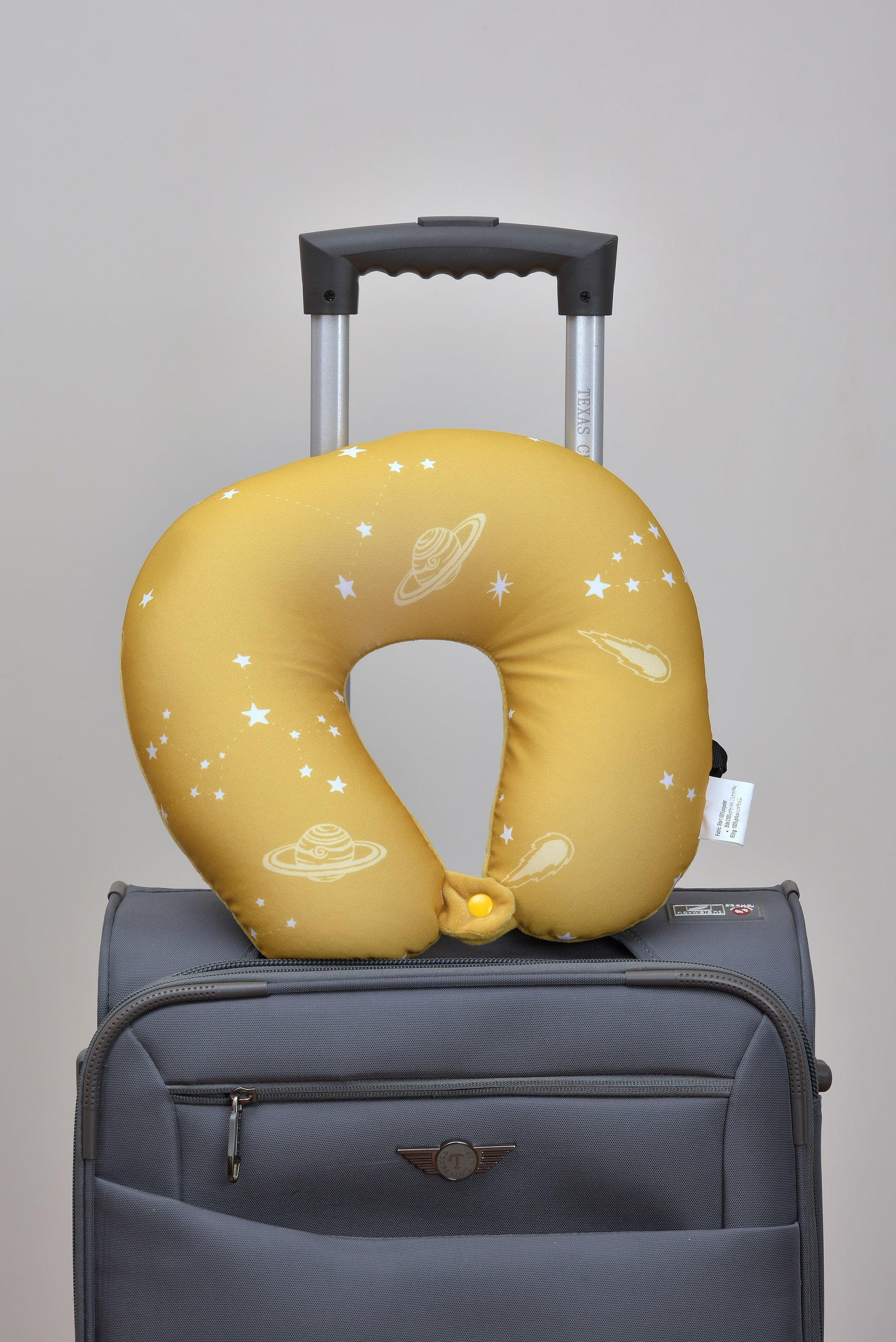 Cushy® Travel Neck Pillow with 360-Degree Head Support - Micro Beads Luxury Soft Pillow for Sleeping Rest - Home Travel Airplane Car - Printed, Yellow