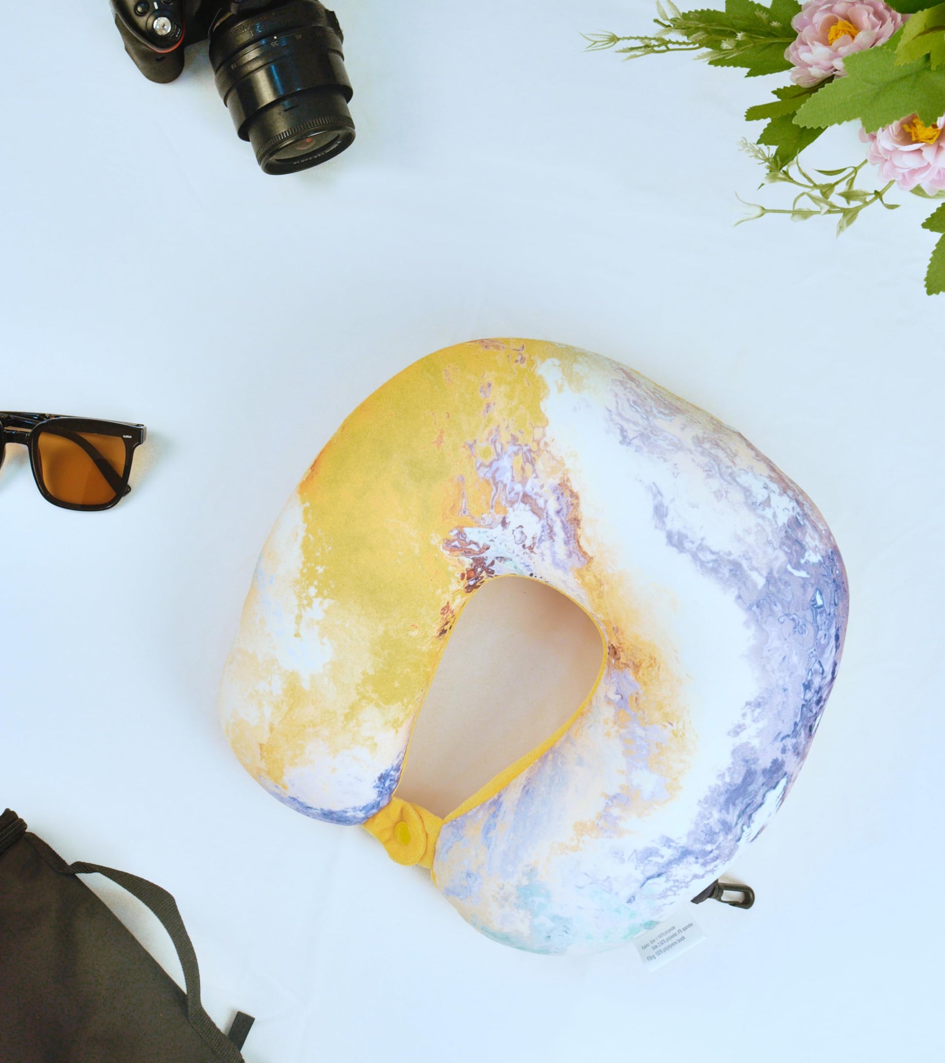 Cushy® Travel Neck Pillow with 360-Degree Head Support - Micro Beads Luxury Soft Pillow for Sleeping Rest - Home Travel Airplane Car - Printed, Yellow & Blue