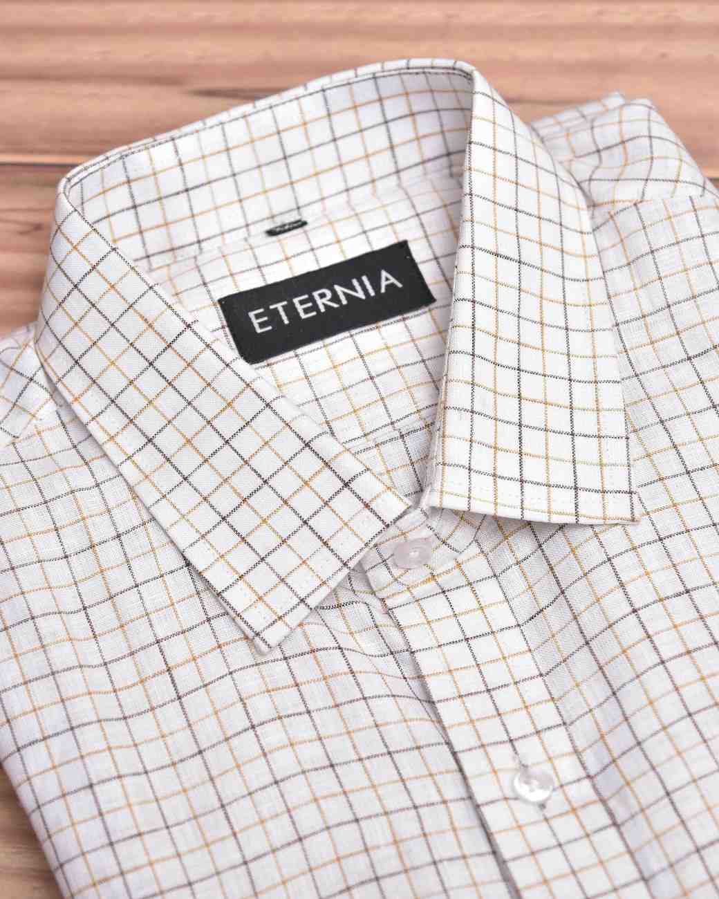 Eternia® Classic Men’s Linen Shirt – Premium Comfort for Every Season - White Checkered Pattern