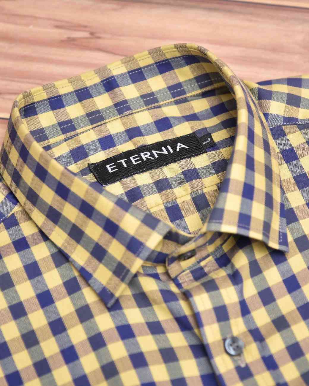 Eternia® Classic Men’s Linen Shirt – Premium Comfort for Every Season - Yellow & Blue Checkered Pattern