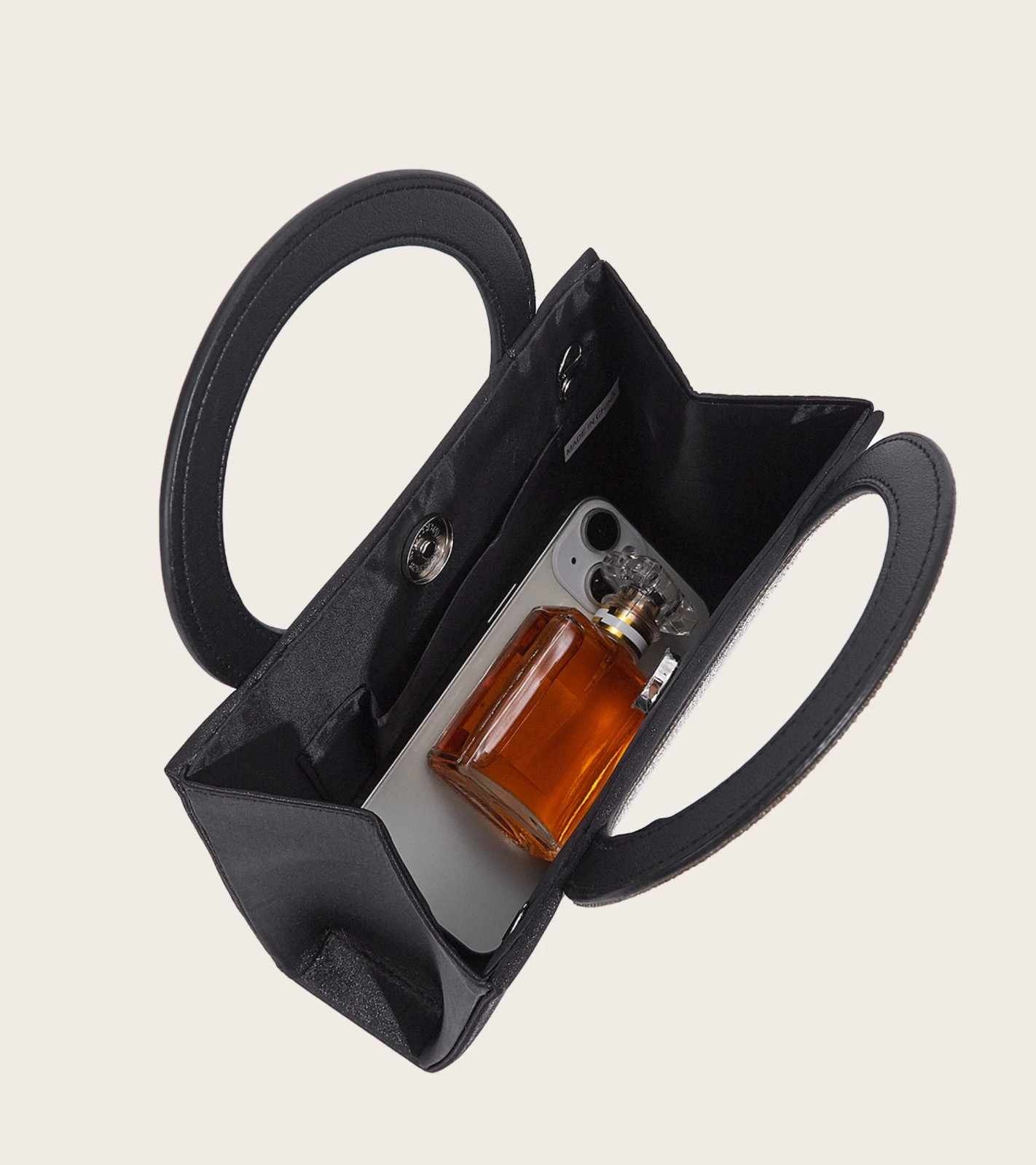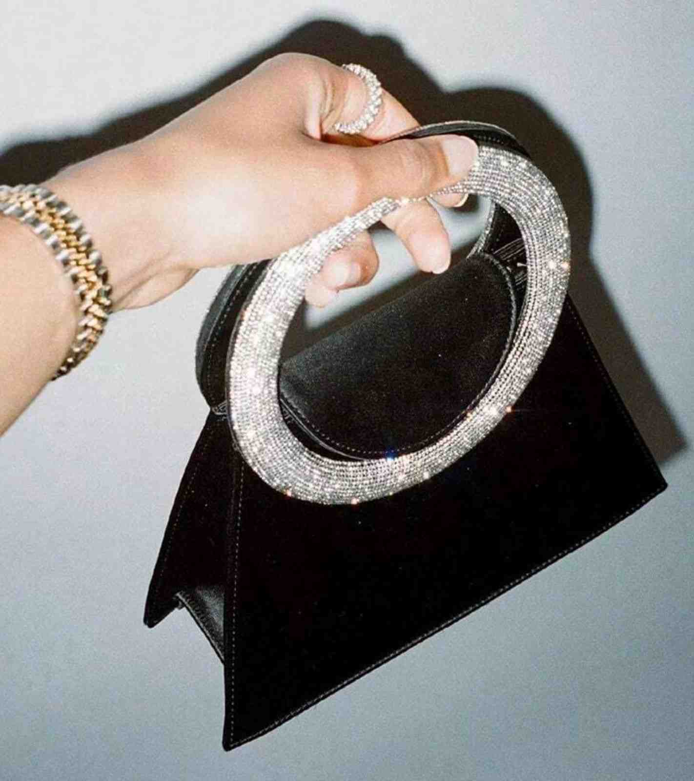 Perfect for evening occasions, parties, weddings, and celebrations, this handbag combines minimalist design with bold detail. The compact structure keeps your essentials neatly organised while the crystal-studded ring handle adds a sophisticated touch that instantly elevates any outfit.