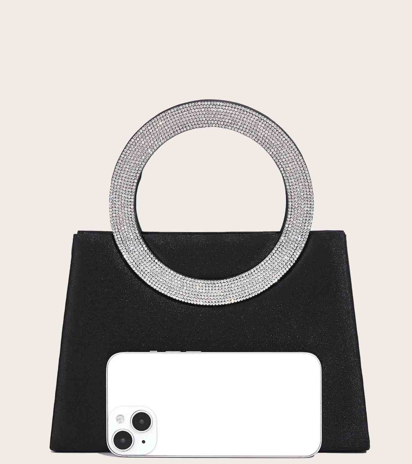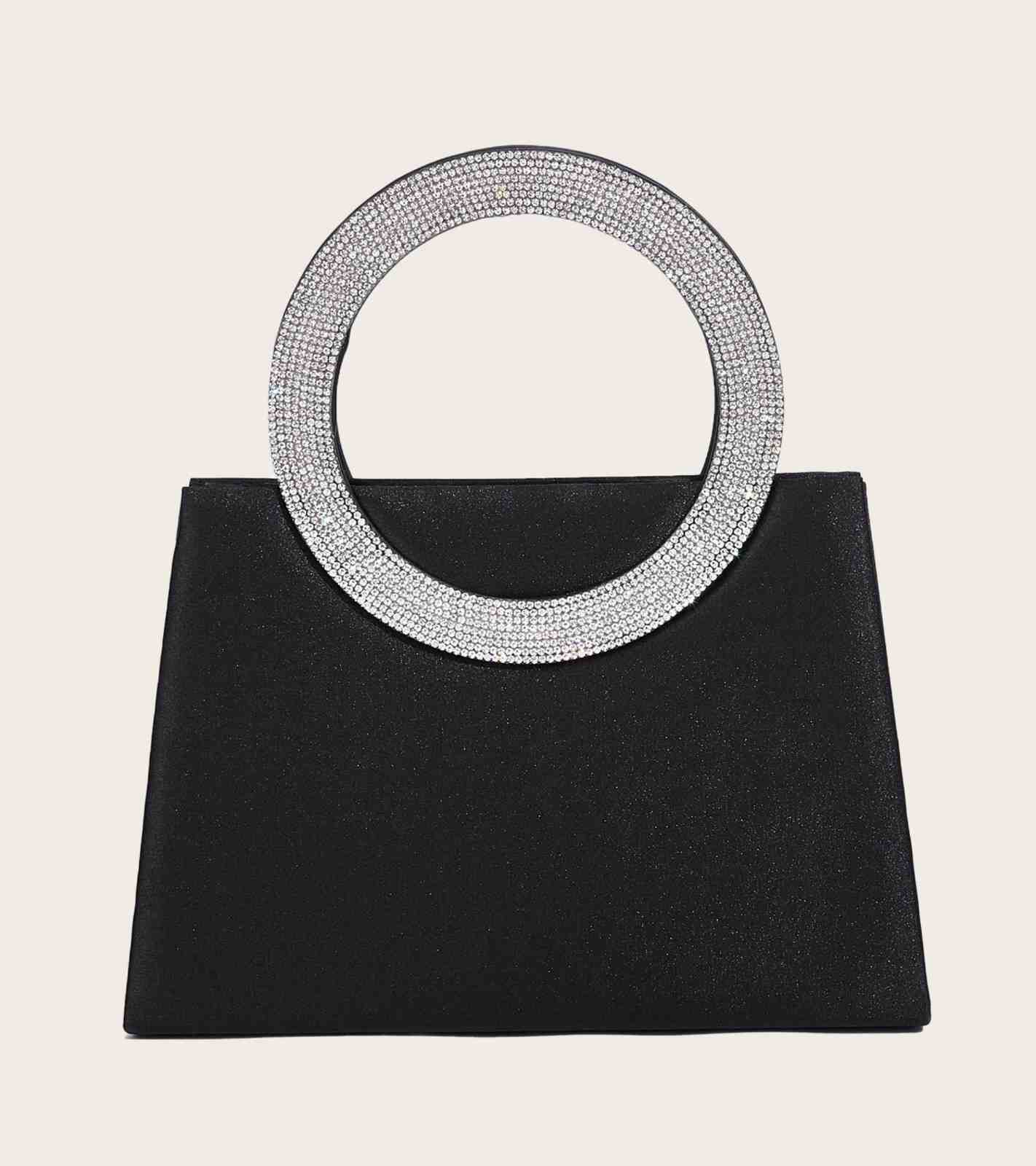 Eternia® Crystal Circle Handle Evening Bag – Rhinestone Top Handle – Black