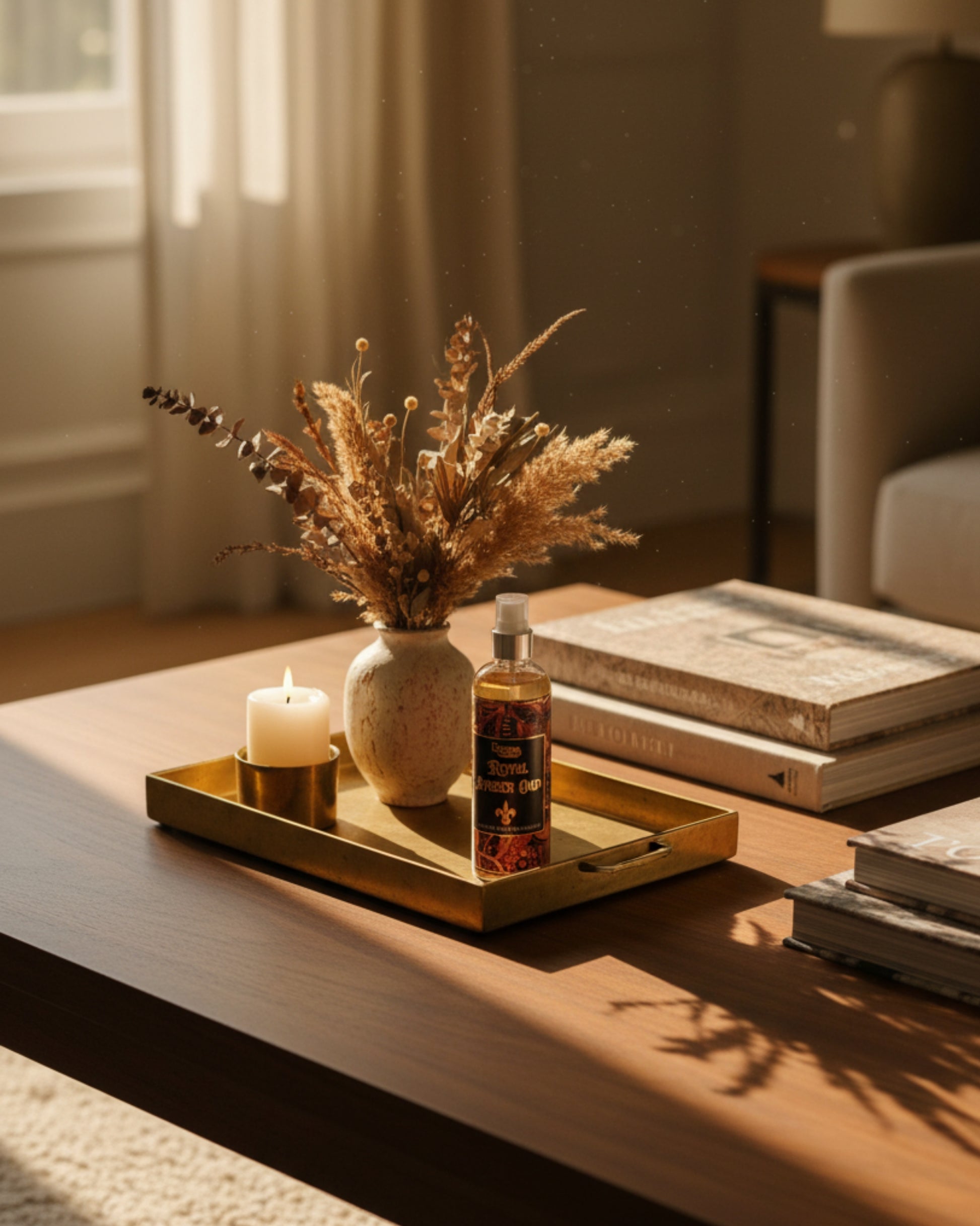 Experience pure sophistication with Eternia® Royal Amber Oud Room Spray. Its rich blend of warm amber and exotic oud creates a luxurious, long-lasting fragrance that instantly elevates your surroundings. Perfect for adding warmth and depth to any space — from bedrooms to offices.