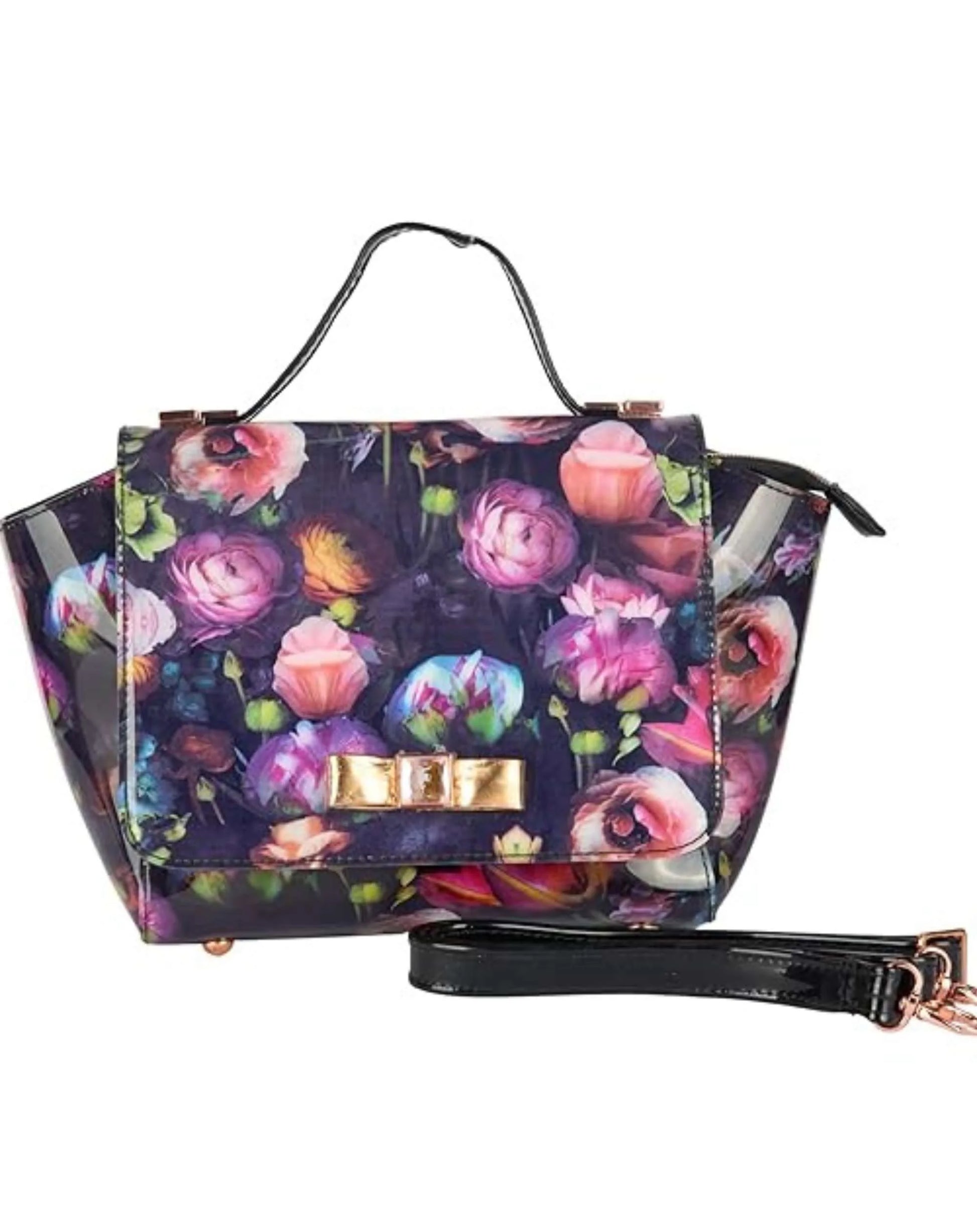 Eternia® Trapeze Luxe Floral Handbag – Fashionable Water-Resistant Purse with Bold Silhouette, Sturdy Build & Detachable Strap - Midnight Muse
