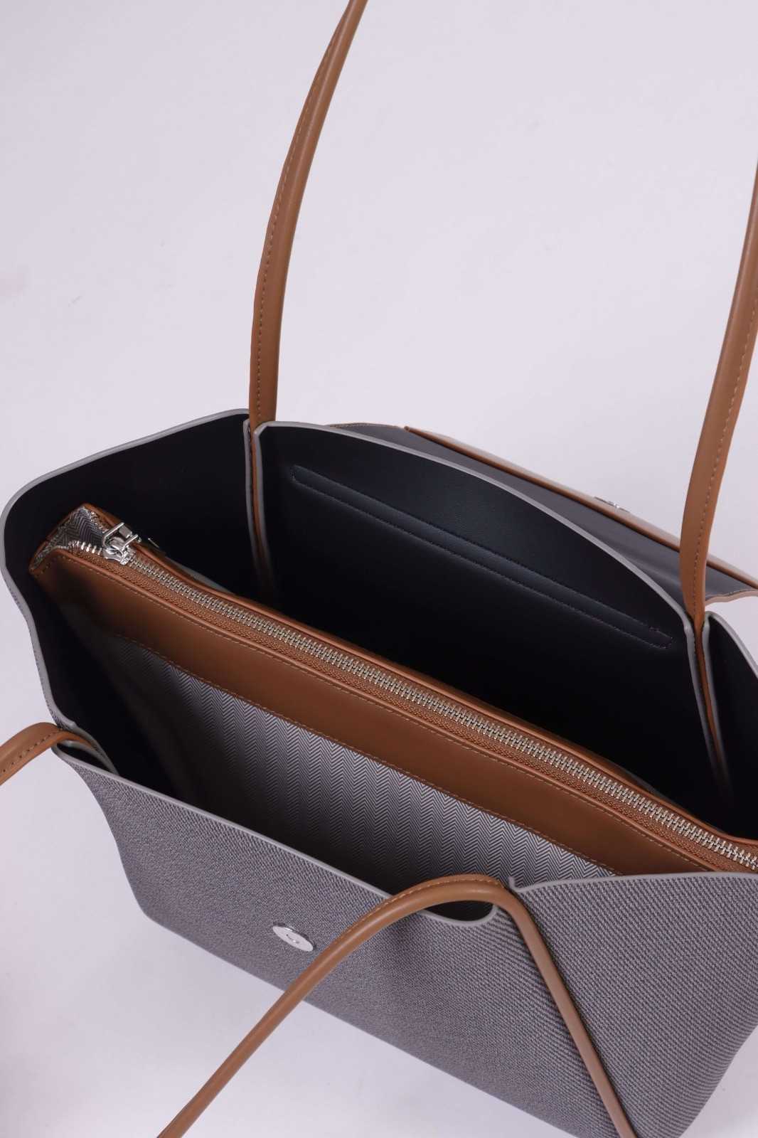 Eternia® Tweed Tote Shoulder Bag – Structured Vegan Leather Handbag (Grey & Brown)