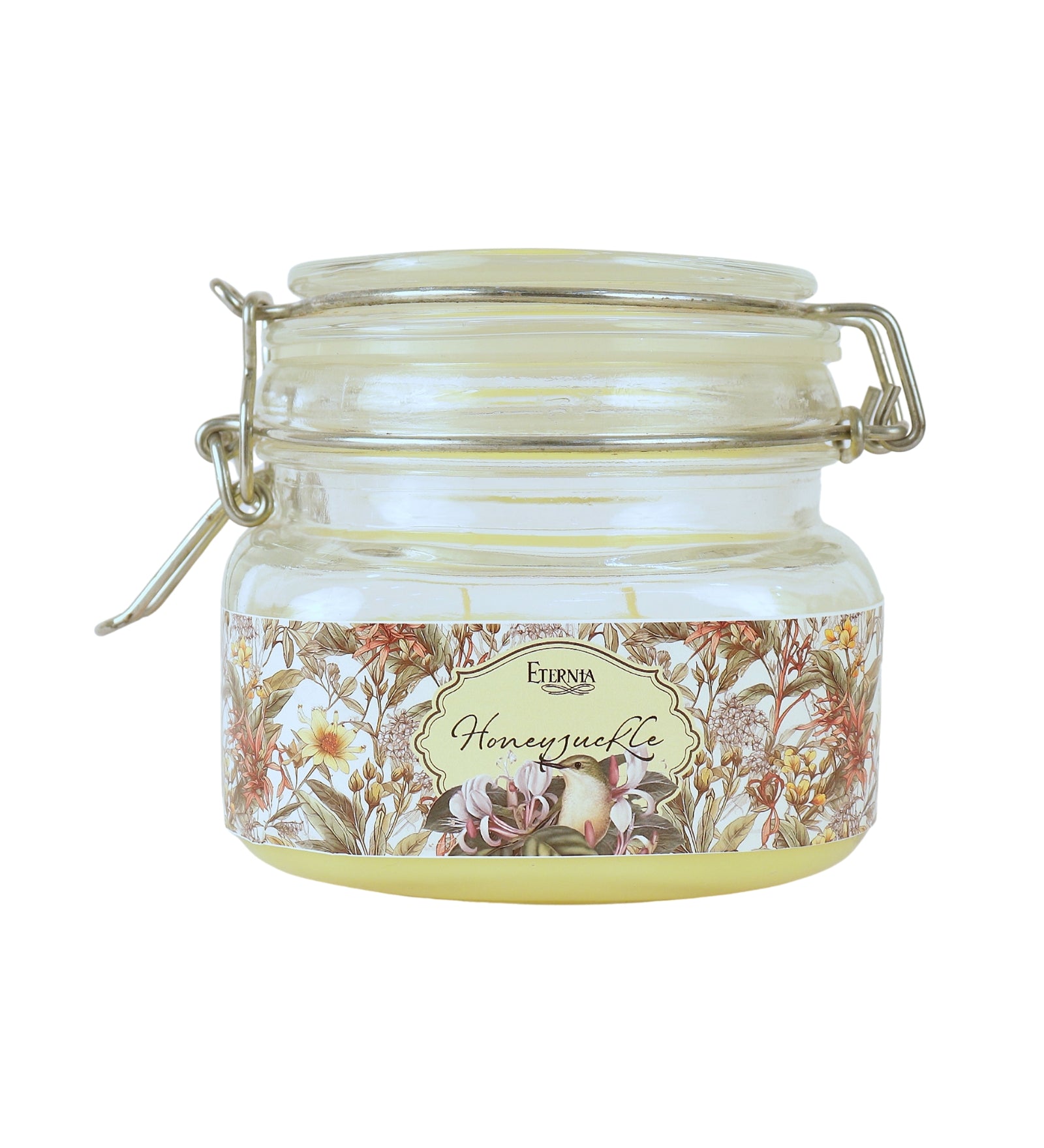 Sweet and wild, the Eternia® Honeysuckle Candle brings the scent of summer gardens indoors with a fresh floral twist. Encased in a sleek glass clip jar, this candle makes every moment a fragrant delight.