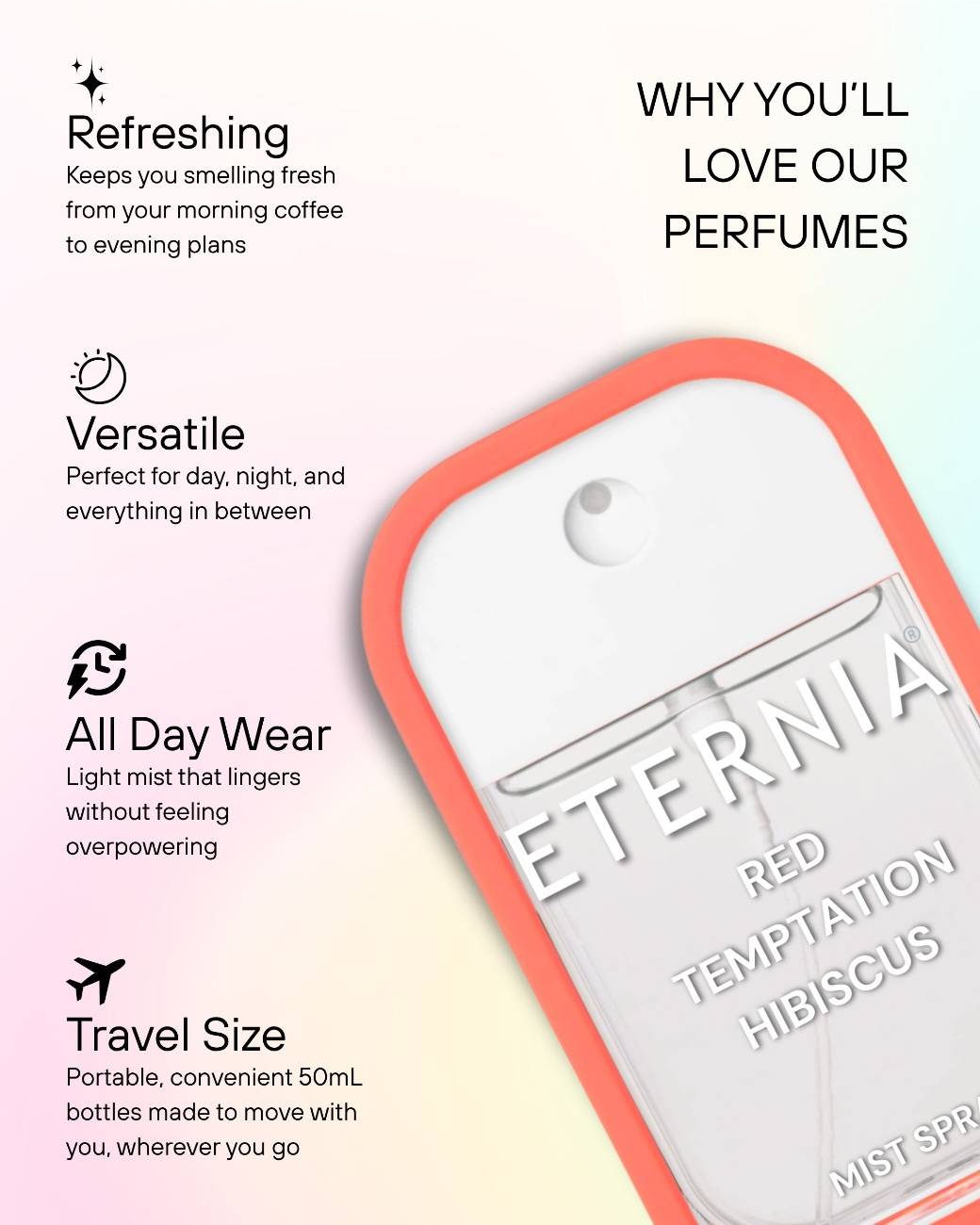 Eternia® Red Temptation Hibiscus Perfume Mist Spray – Hibiscus, Red Berries & Musk | Long-Lasting 50ml Fragrance Spray