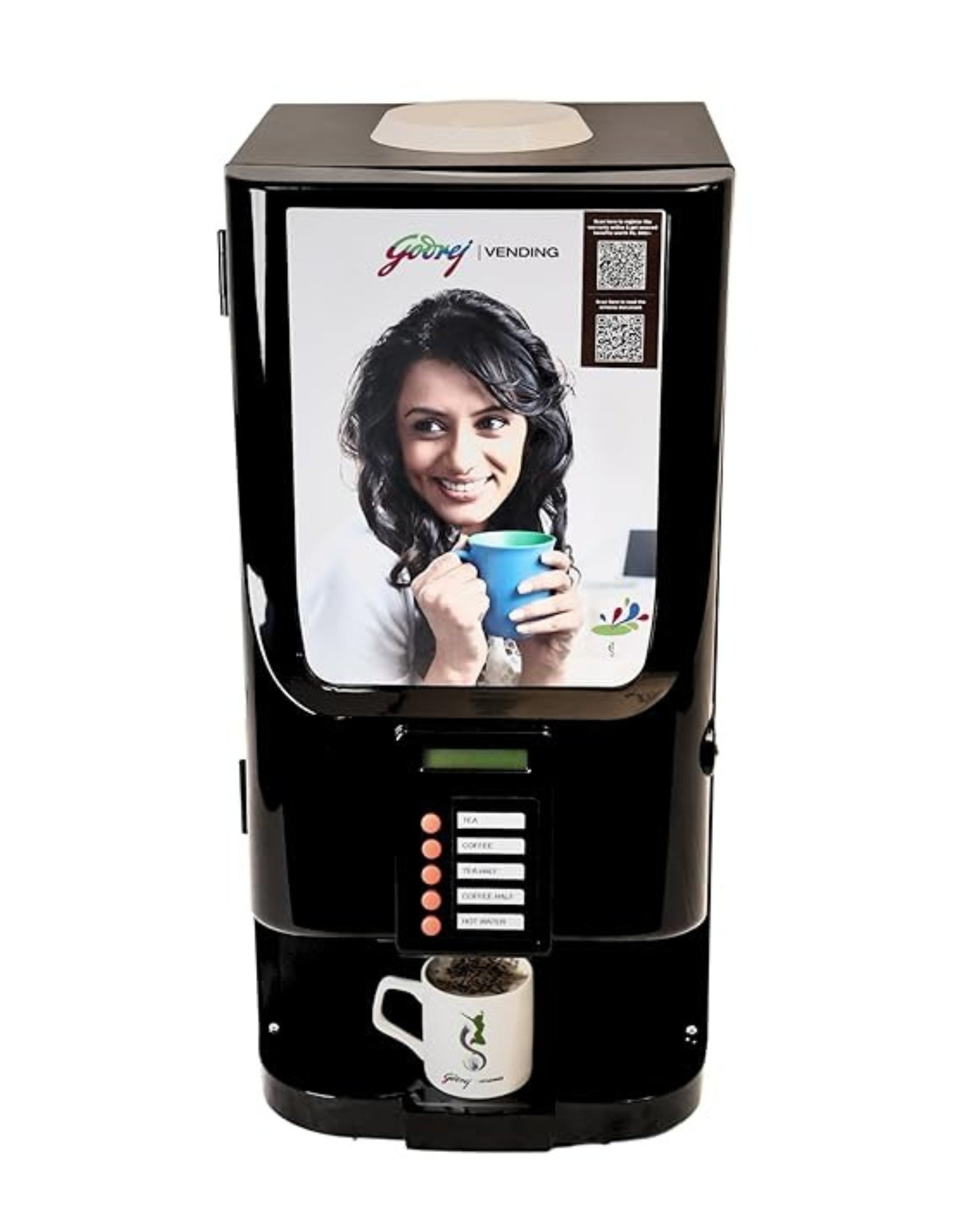 The Godrej Vending Ecostar Coffee Vending Machine is a compact and reliable 2-canister hot beverage dispenser, designed for offices, shops, commercial spaces, and homes. With its sleek tabletop design, it delivers instant coffee and tea with consistent taste and hygiene.