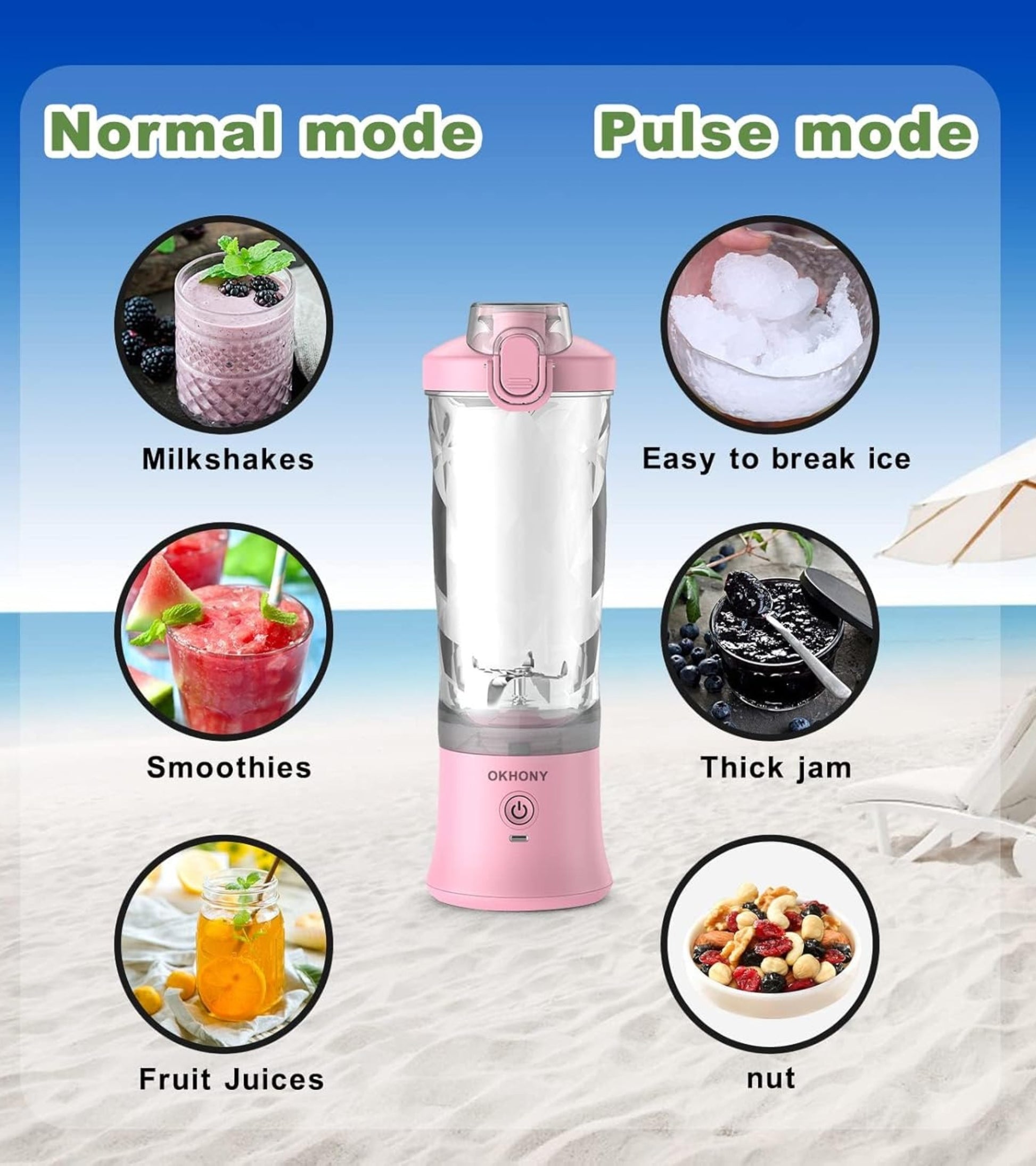 Mix & Go® Portable Blender Juicer – USB Rechargeable Smoothie Maker with 6 Blades, 380ml Capacity, 2000mAh Battery – Waterproof Mini Blender for Travel, Gym & Office