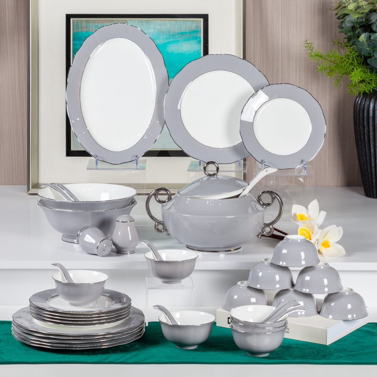 Premsons® 40-Piece Tableware Set – Elegant Porcelain Dining Set for 6 – Plates, Bowls & Serve Ware – Grey