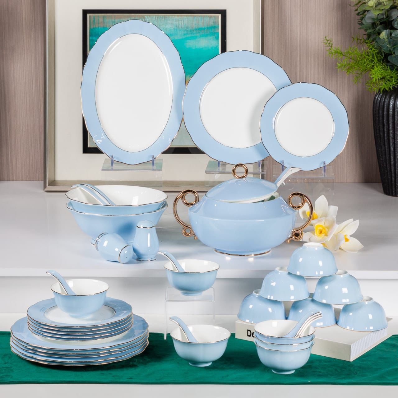 Premsons® 40-Piece Tableware Set – Elegant Porcelain Dining Set for 6 – Plates, Bowls & Serve Ware – Powder Blue