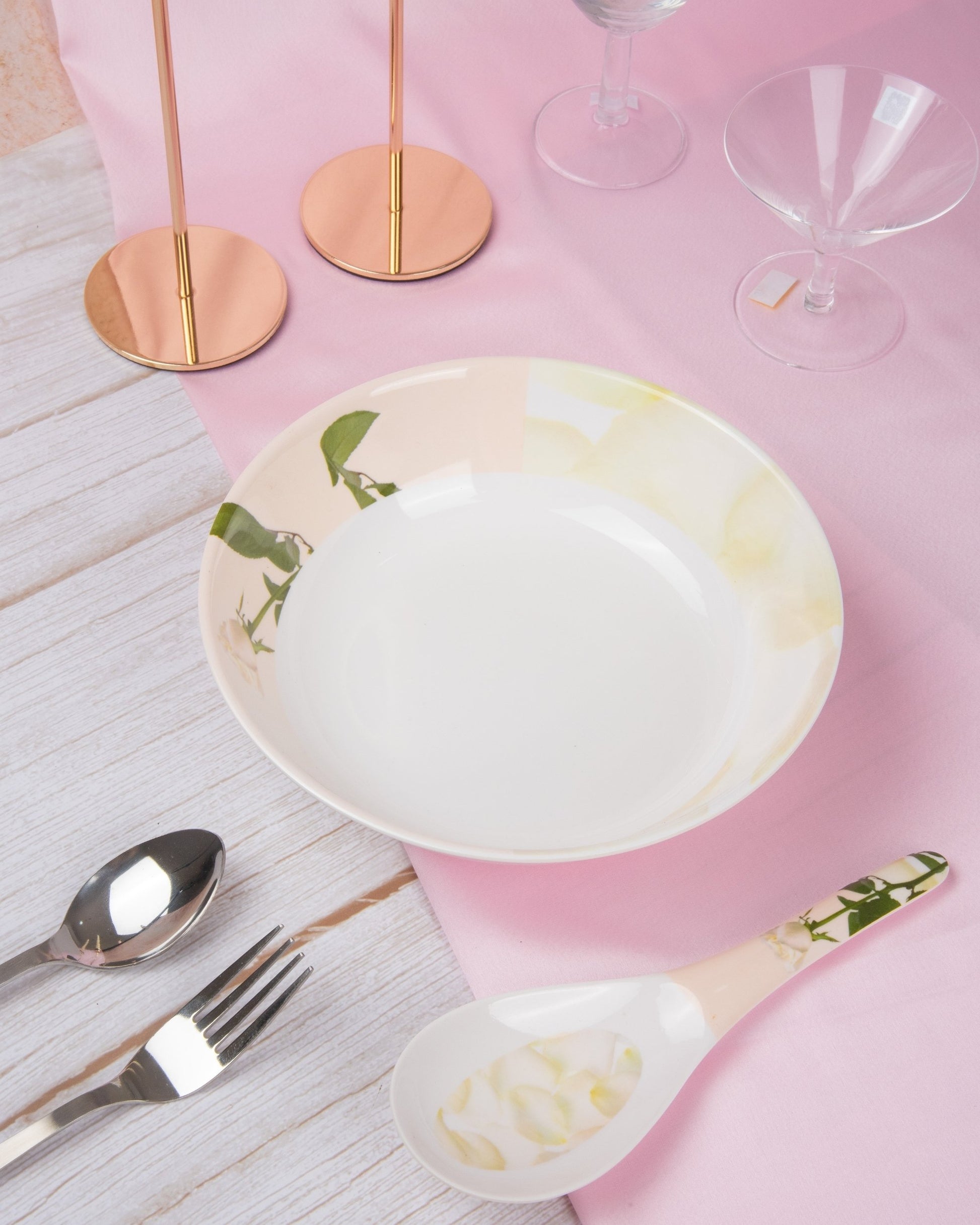 Add charm to every meal with the Premsons® 8.5" Melamine Serving Bowl Set of 6, featuring a delicate White with Rose Print Design. Crafted from high-quality, break-resistant melamine, these bowls are lightweight, durable, and perfect for everyday use or special occasions. Ideal for serving salads, curries, soups, or snacks, they bring elegance and practicality to your dining table. 🍲✨