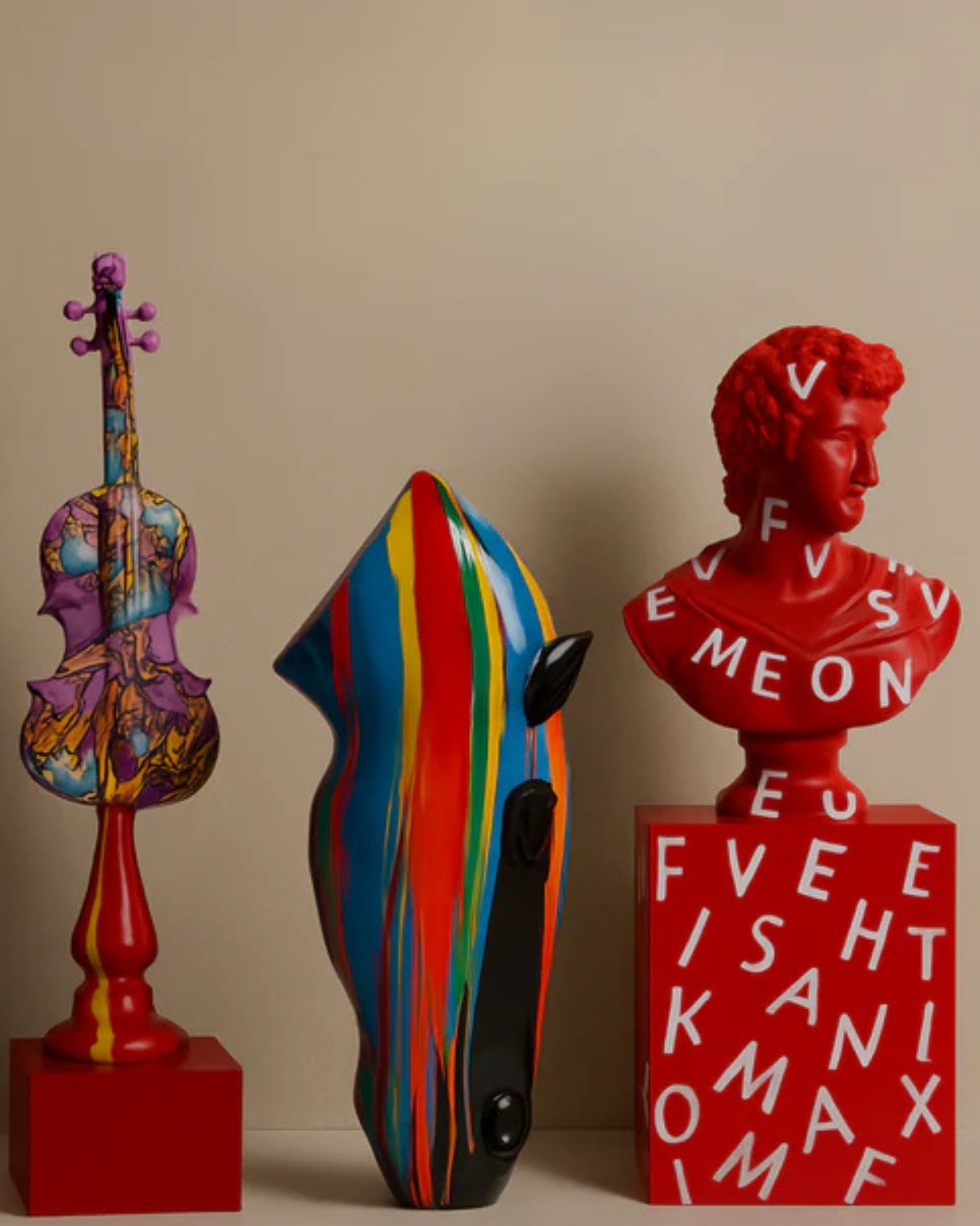 🎨 Vibrant Artistic Design – Painted in bold red, blue, yellow, and black for a captivating abstract aesthetic.