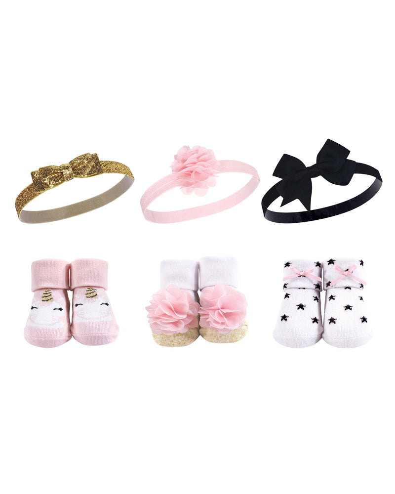 Premsons® Baby Girl Gold Unicorn Headband and Socks Set – 6-Piece Magical Gift Set for Newborns