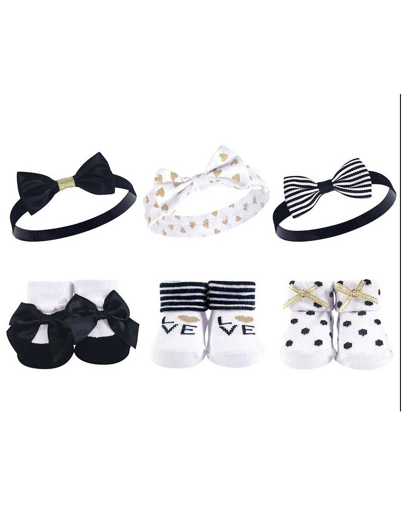 Premsons® Baby Girl Headband and Socks Set – 6-Piece Newborn Gift Set in Black and Gold