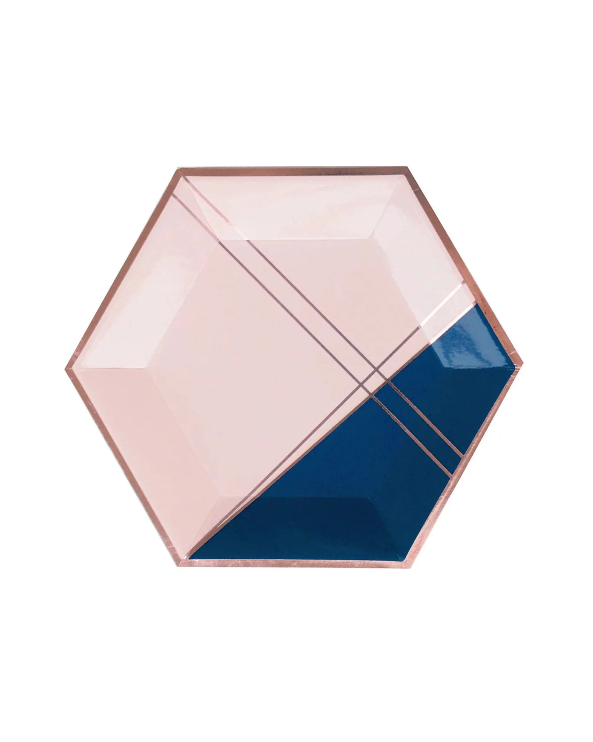 Premsons® 10-Inch Blush Pink & Navy Blue Colourblock with Gold Large Paper Plates - Birthday, Wedding, Showers Disposable Decorative Party Plates - Pack of 10