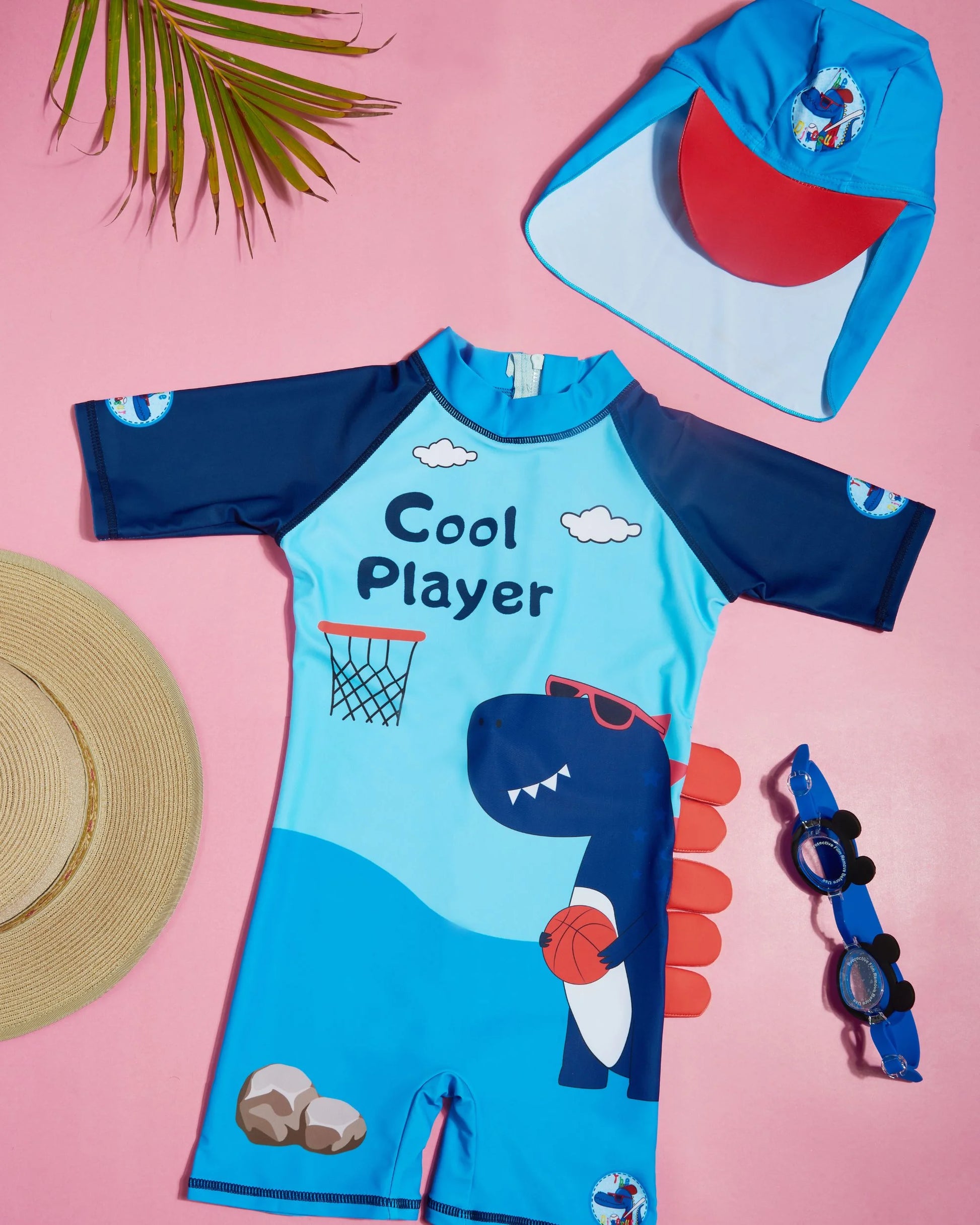 Crafted from soft, quick-dry fabric, this swimsuit ensures your child stays comfortable both in and out of the water. The set includes a matching swim cap for added style and protection, creating a coordinated look kids will love.
