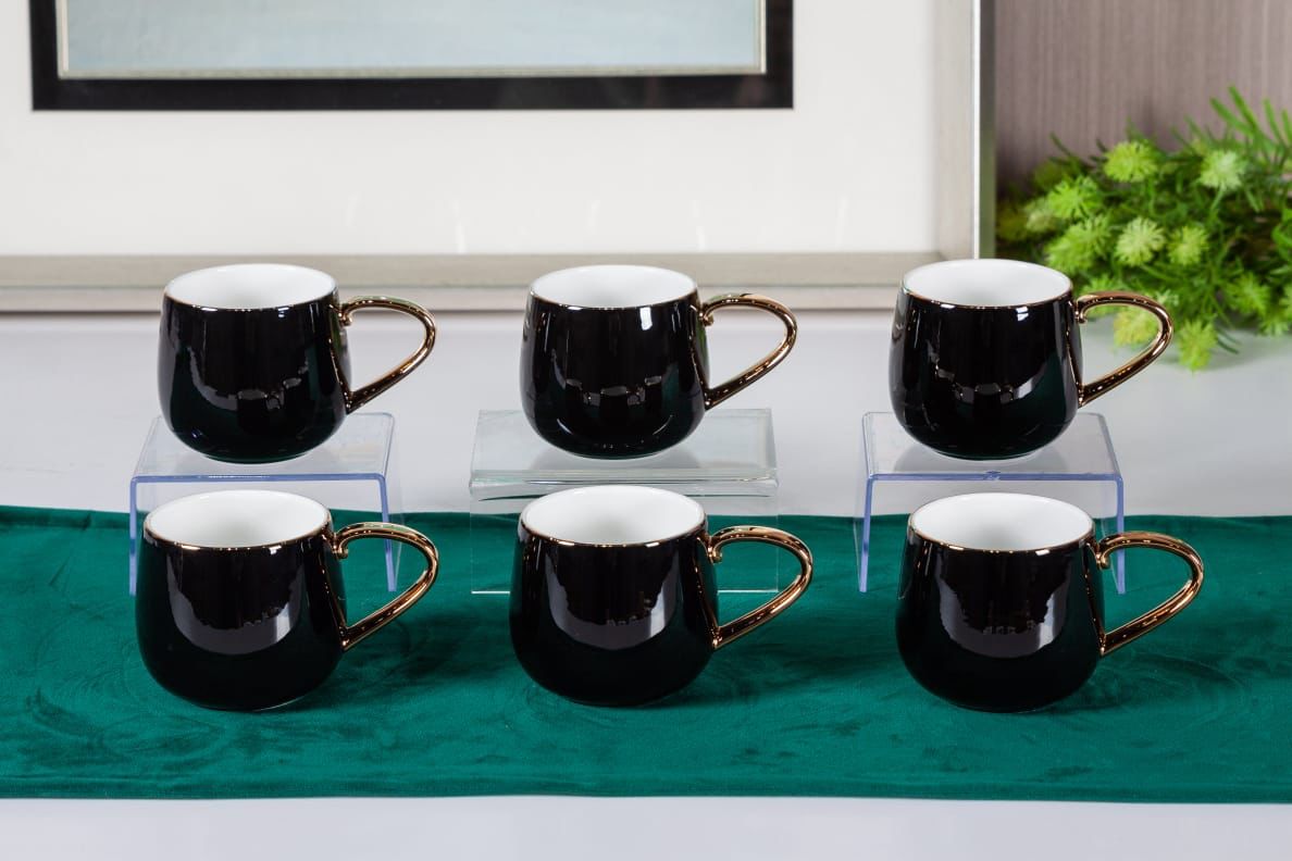 Premsons® Coffee Mugs Set of 6 – Elegant Porcelain Mugs for Coffee & Tea – Black