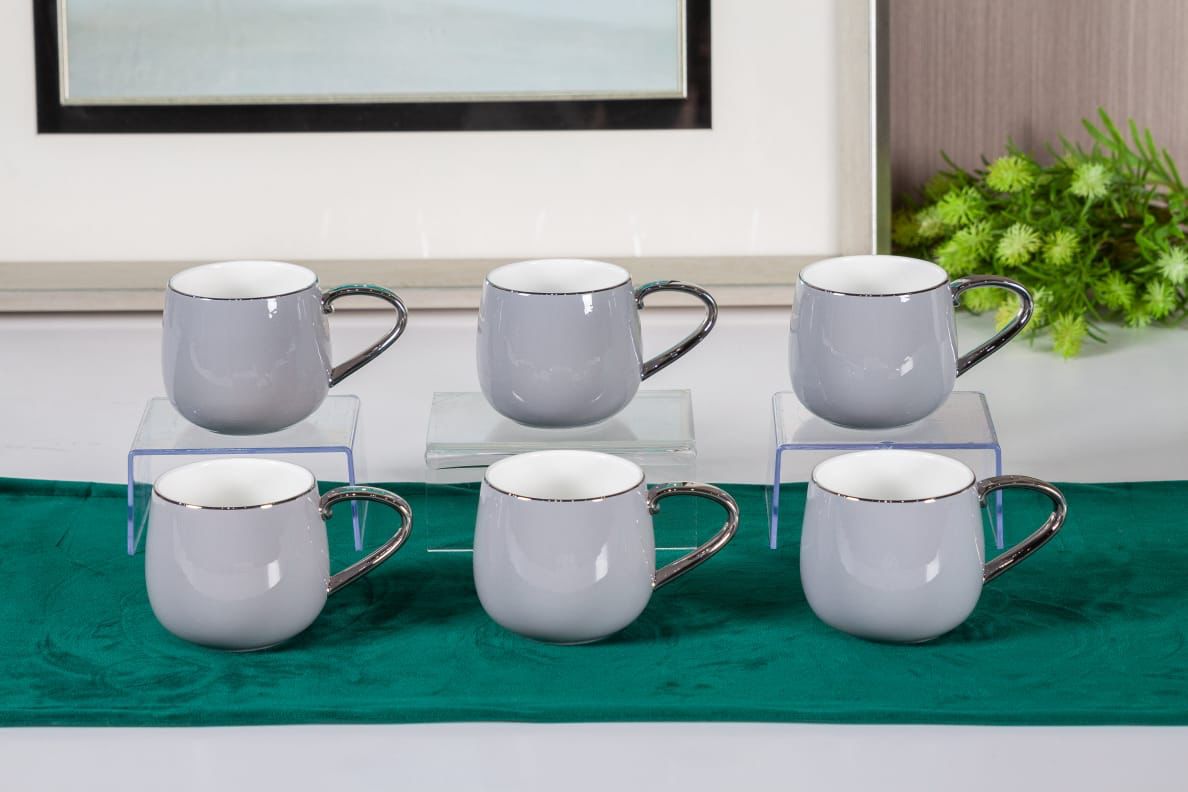 Premsons® Coffee Mugs Set of 6 – Elegant Porcelain Mugs for Coffee & Tea – Grey