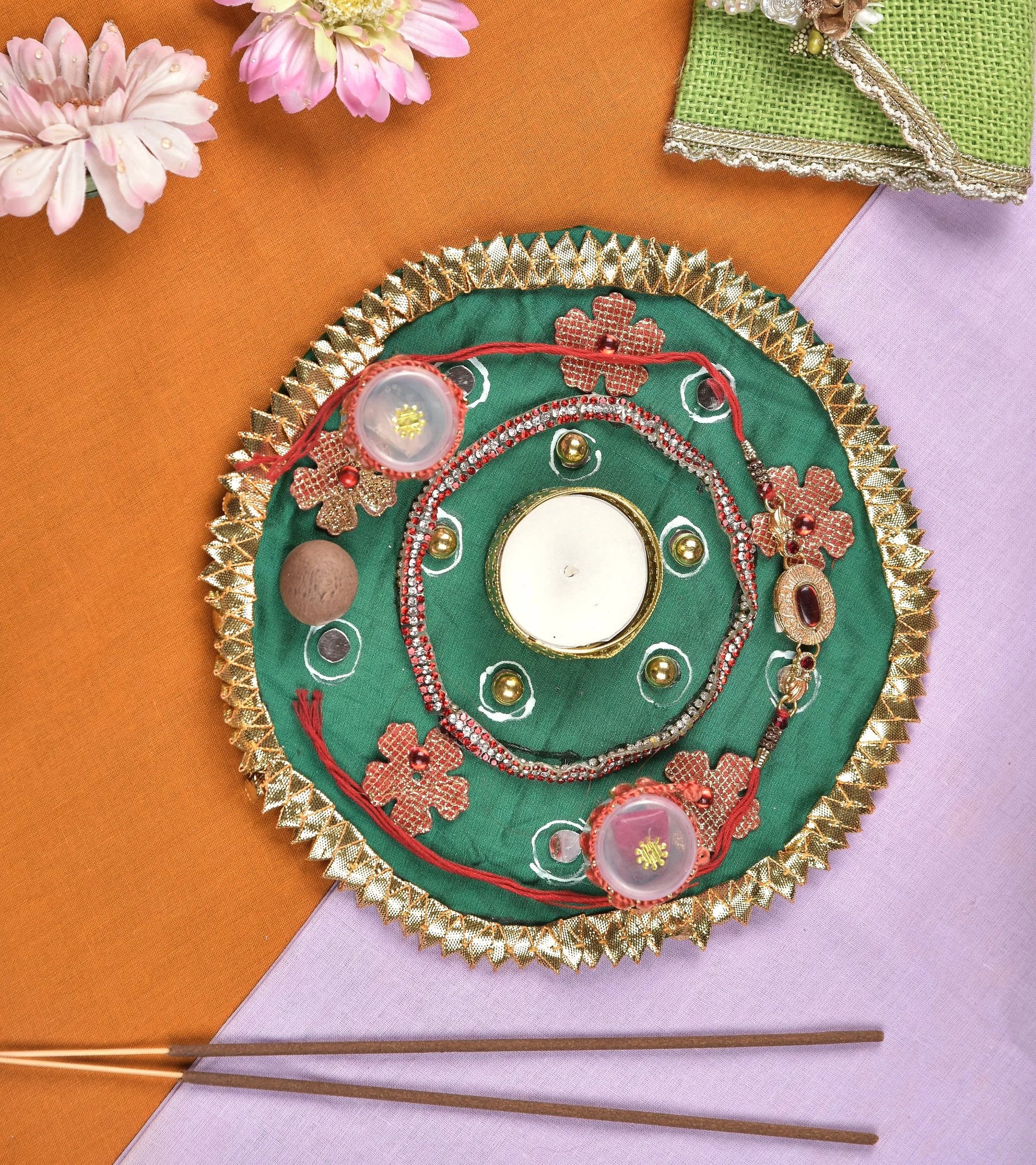 Premsons® Green Decorative Pooja Thali with Beads & Embellishments – For Every Auspicious Occasion