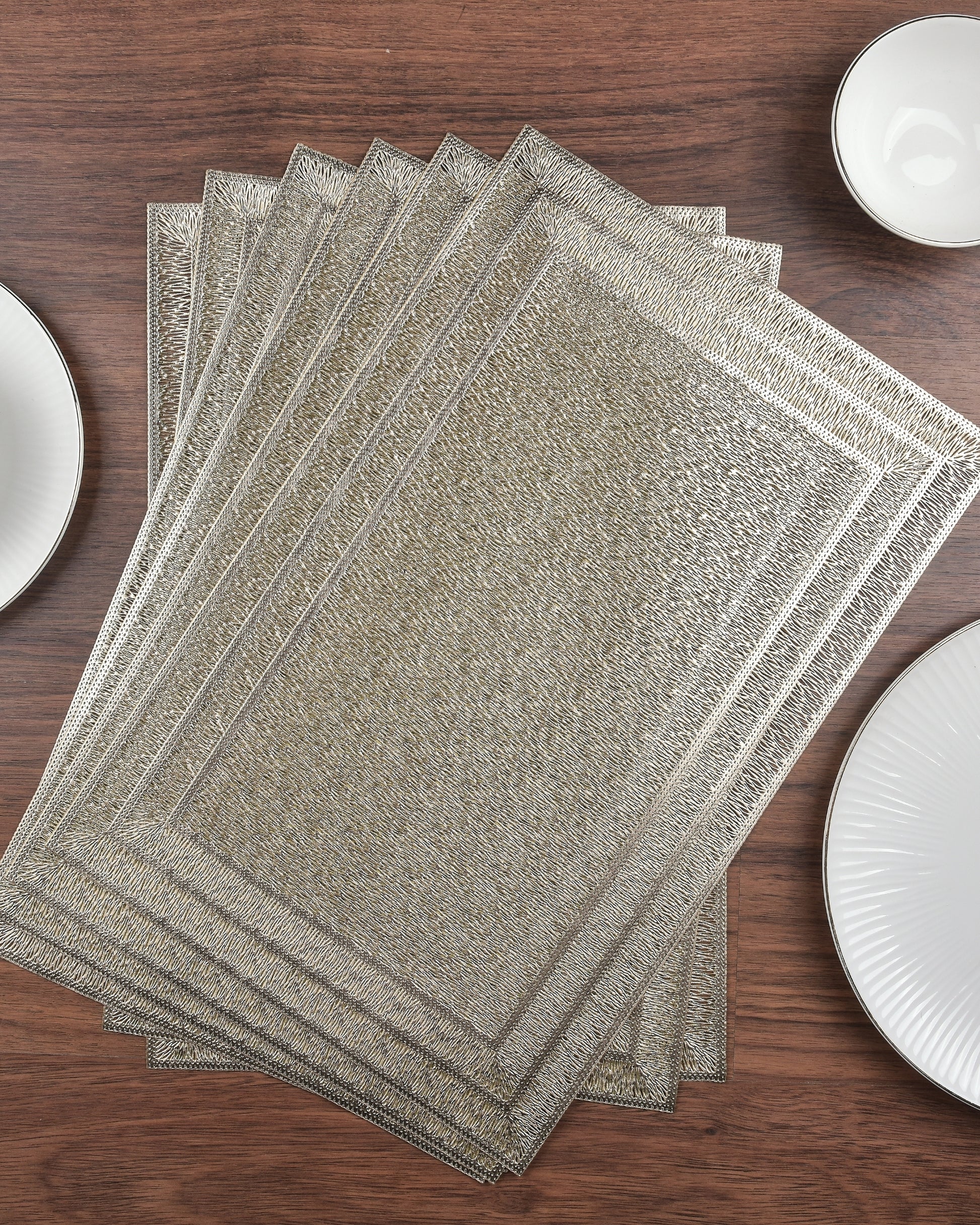 Elevate your table setting with Premsons® Golden Vinyl Rectangle Placemats. Featuring a stylish hollow design, these mats are washable, non-slip, and stain-resistant—ideal for daily dining, festive occasions, and elegant events.