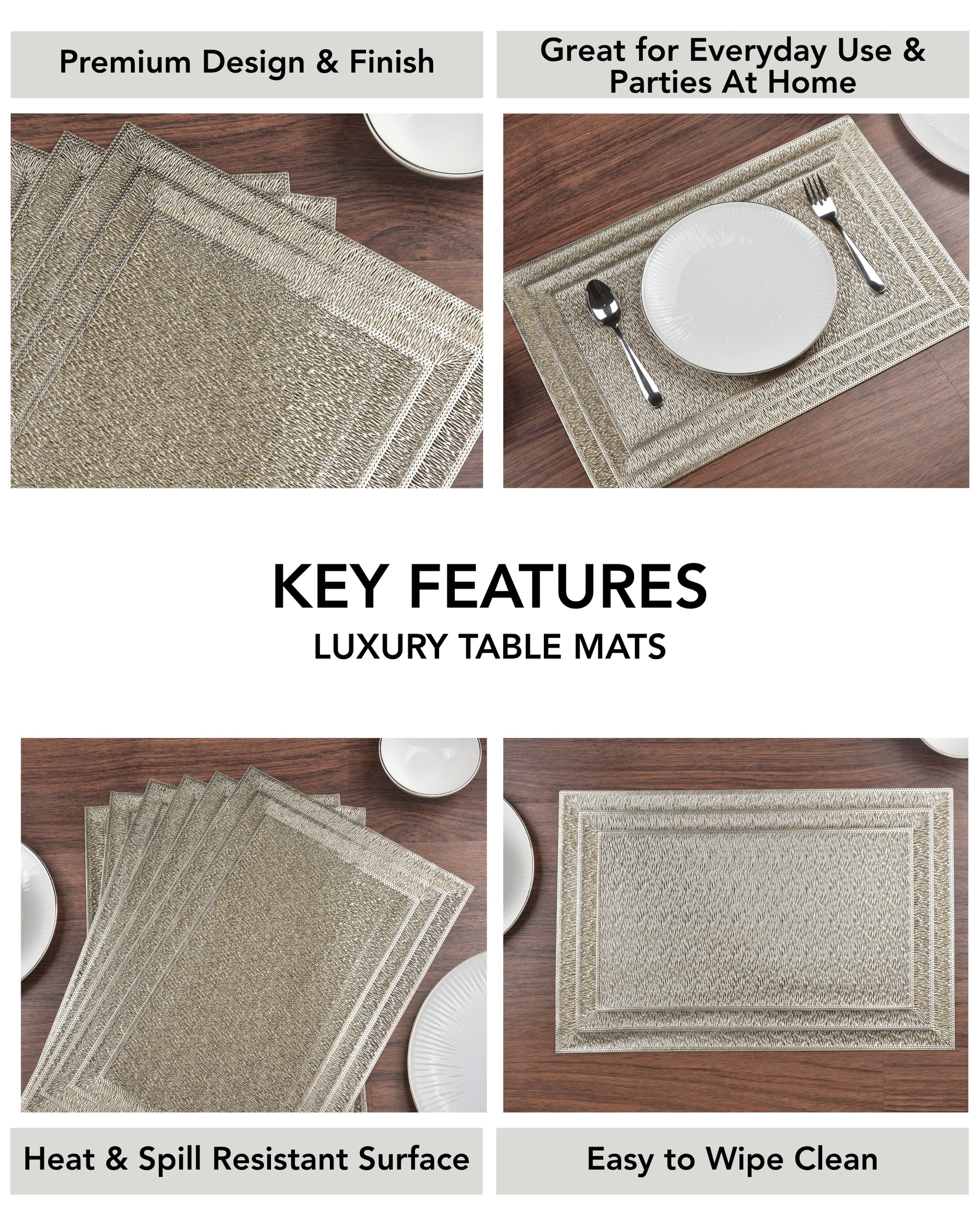 Premsons® Golden Vinyl Rectangle Placemats – Washable, Non-Slip, Stain-Resistant Hollow Design Table Mats for Dining, Kitchen, Wedding & Party Décor