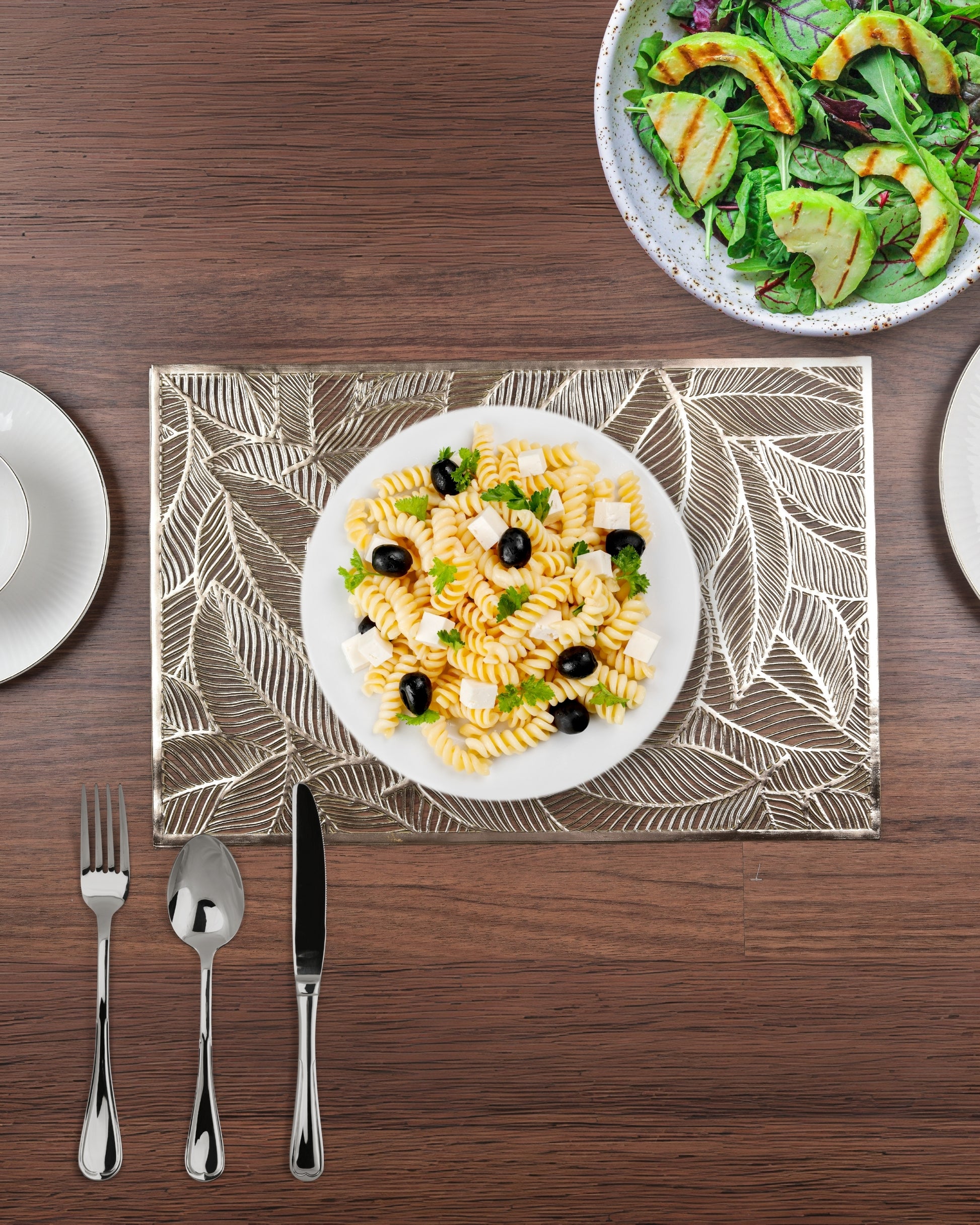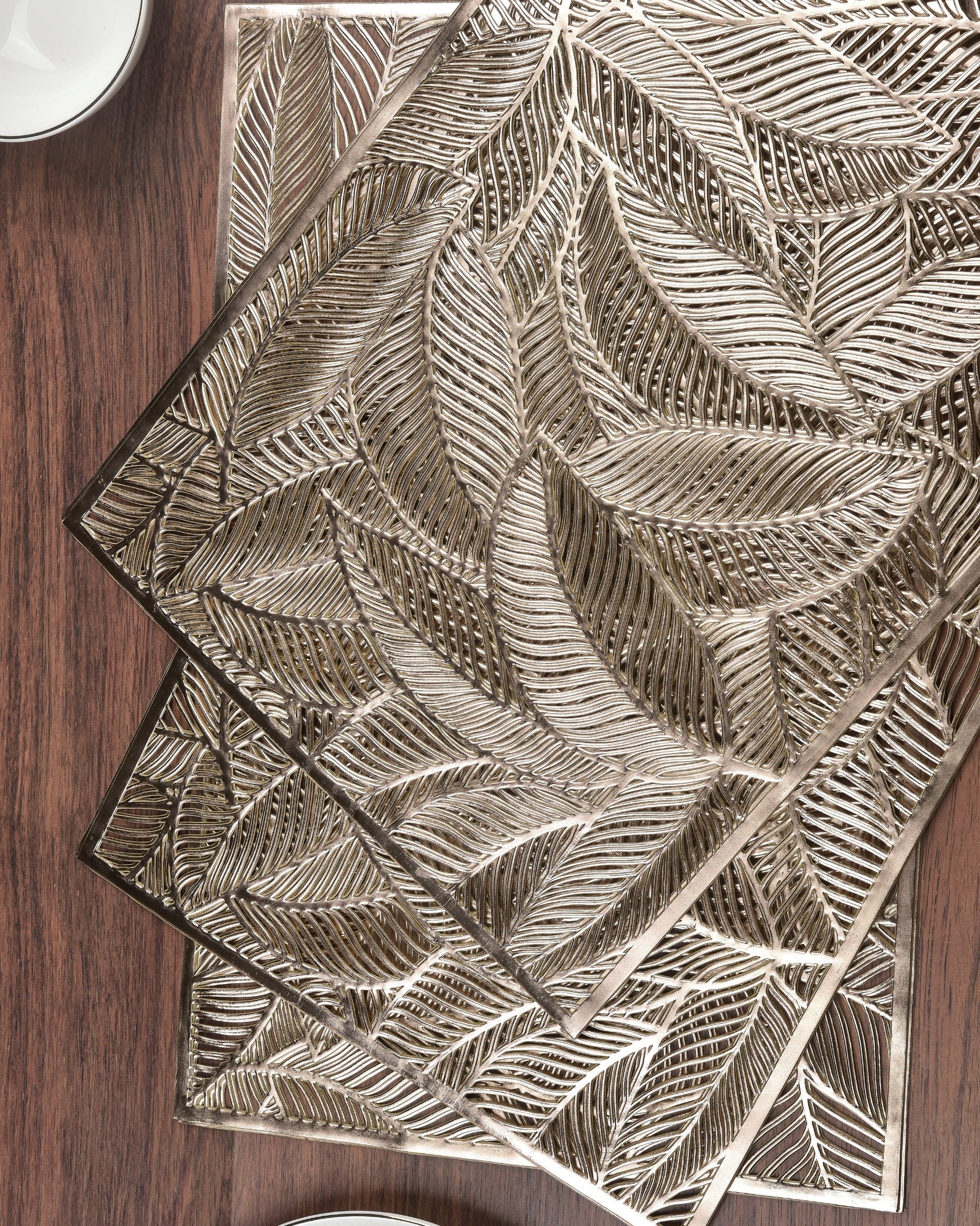 Elevate your dining setup with Premsons® Embossed Leaf Design Table Mats. Featuring a luxurious gold finish and intricate leaf pattern, these mats offer the perfect blend of elegance and function. Ideal for everyday use or special occasions.