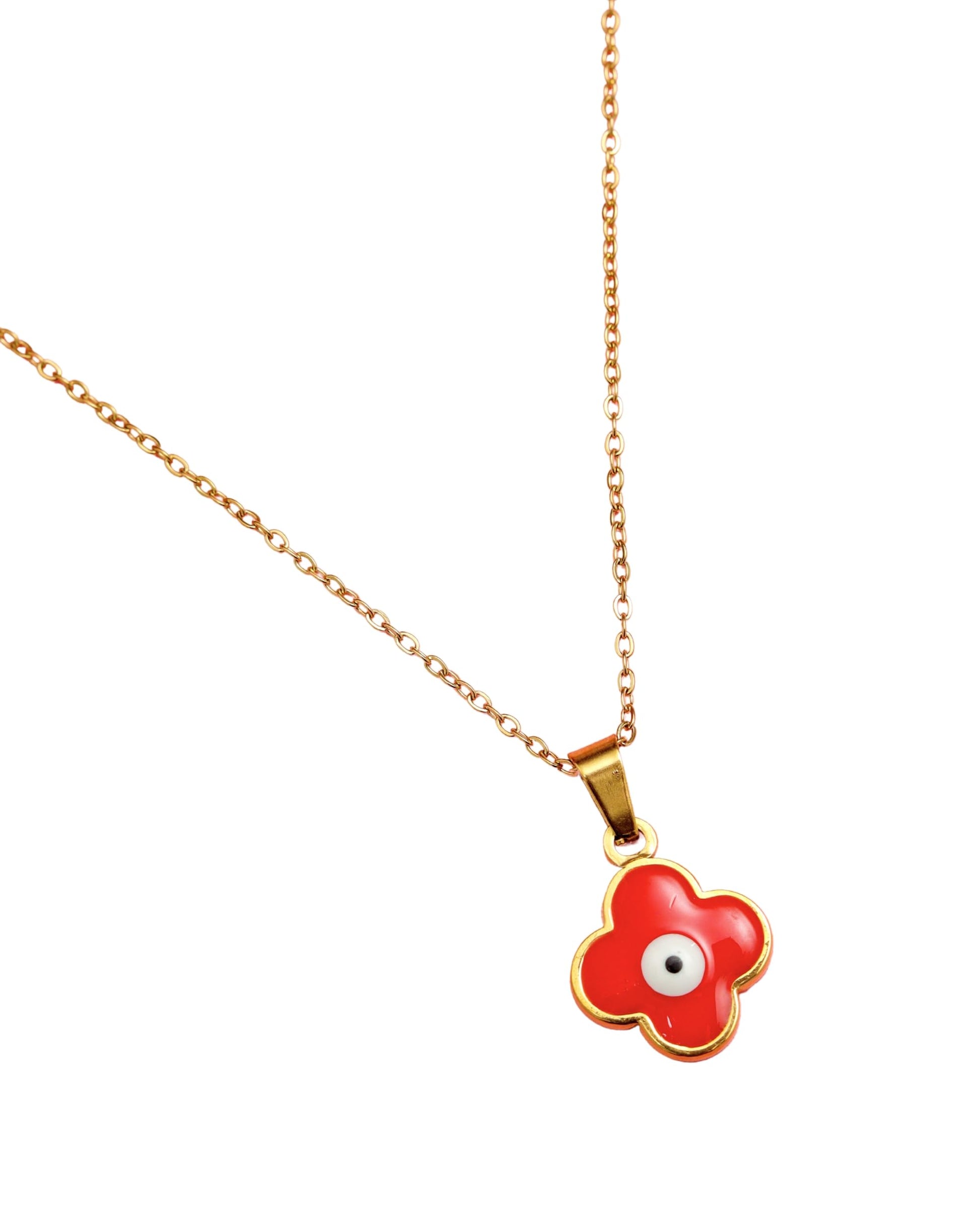 Premsons® Evil Eye Clover Pendant Stainless Steel Necklace | Stylish & Symbolic Jewelry for Gifting | Red