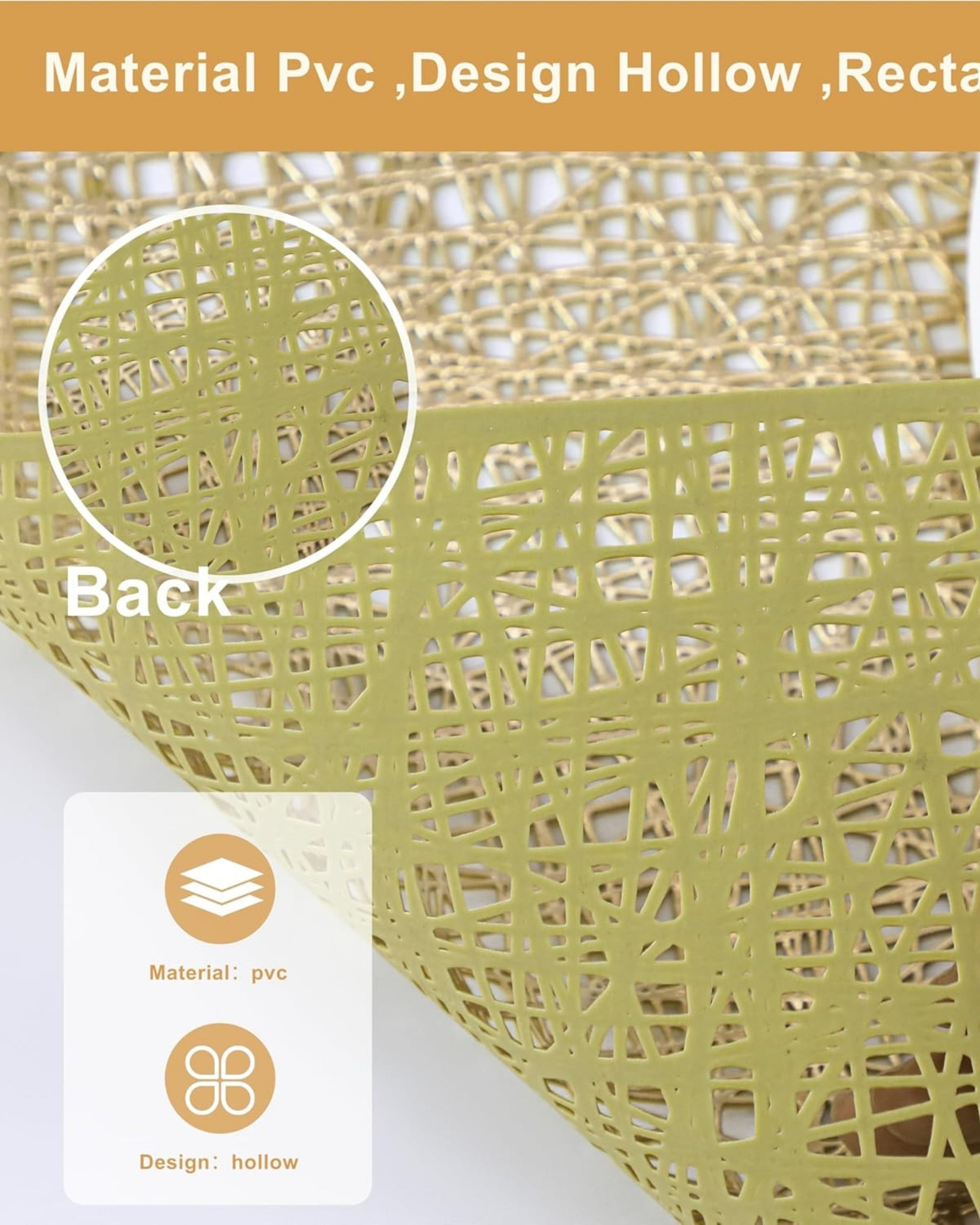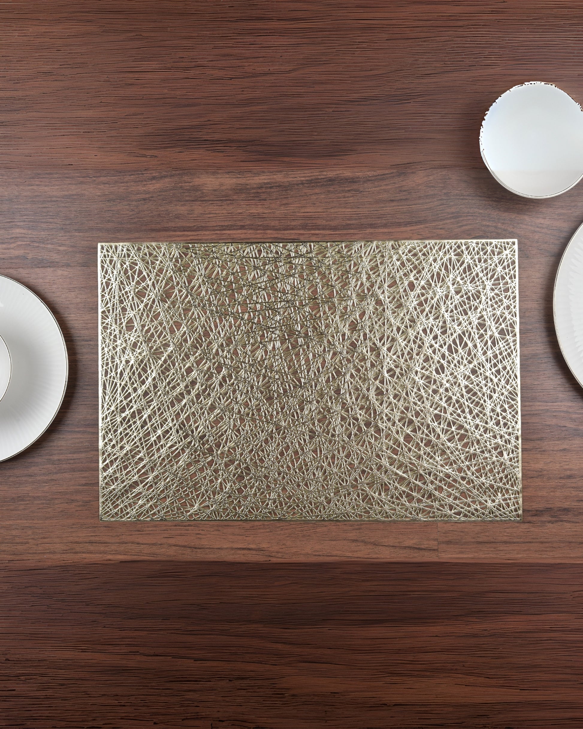 Premsons® Golden Mesh Design Rectangle Metallic Placemats – Washable, Wipeable, Non-Slip & Stain-Resistant Table Mats for Dining, Kitchen, Wedding & Party Décor