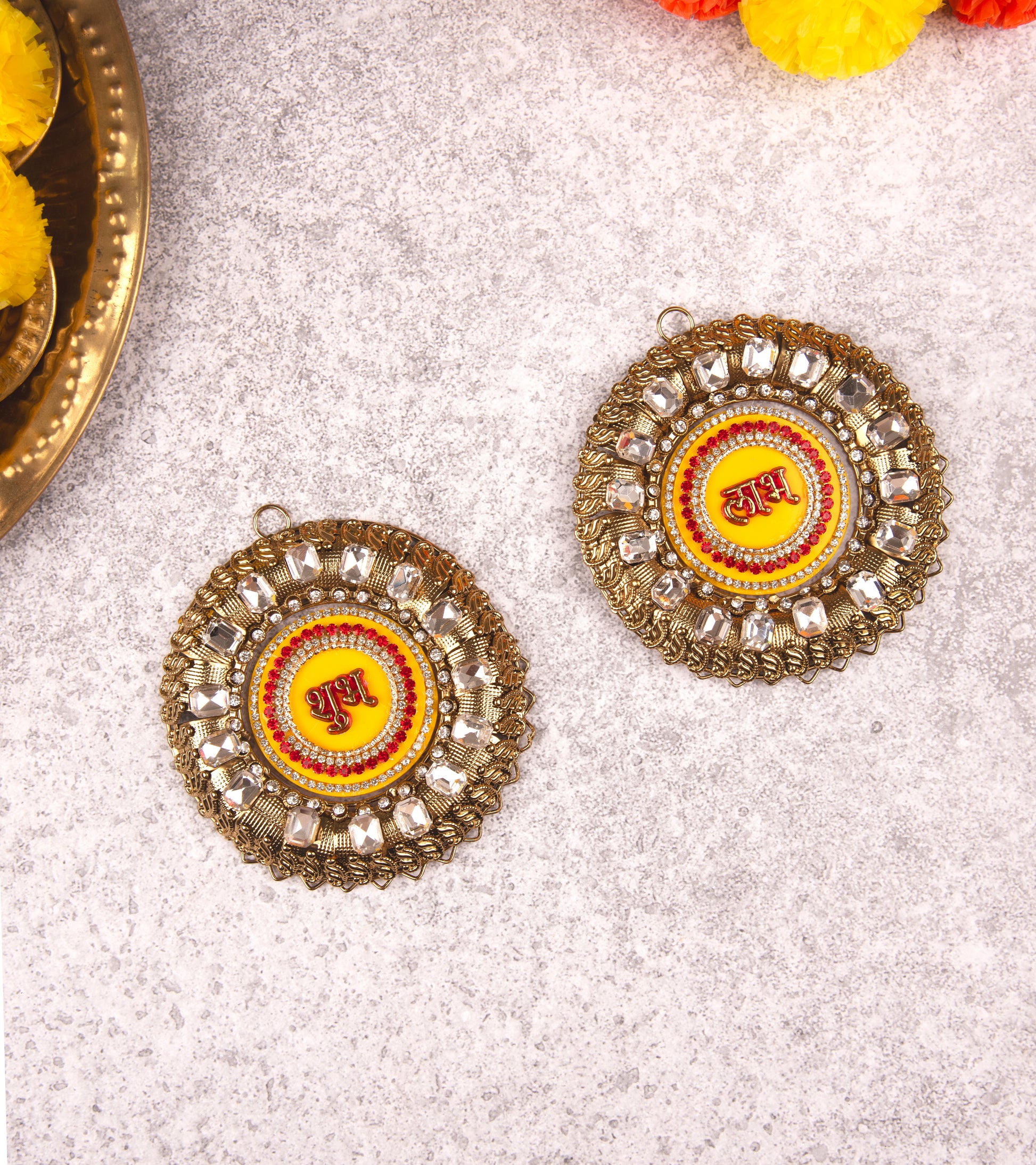 📦 Complete Set: Includes a set of golden round acrylic Shubh Labh stickers for balanced décor.