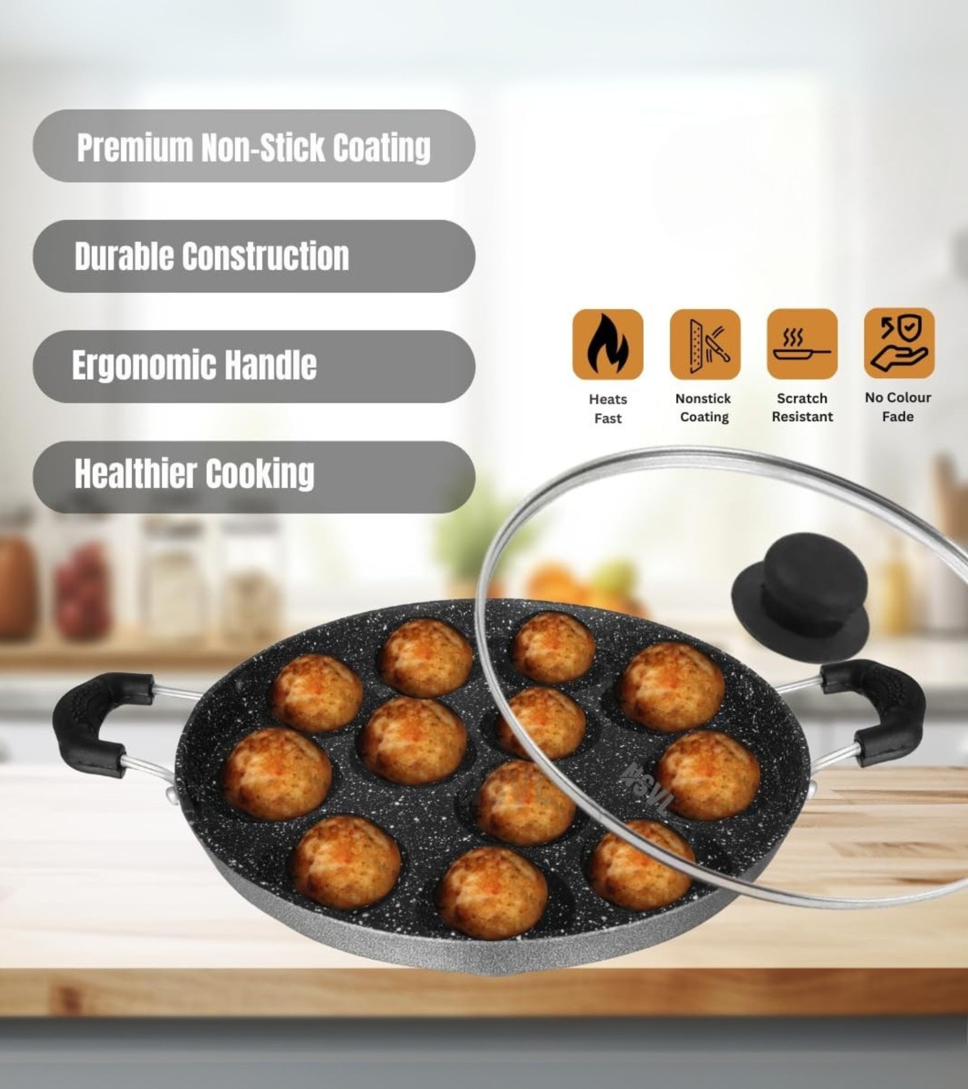 🍳 12 Cavity Non-Stick Pan – Ideal for preparing appams, littis, appe, paniyarams, and more