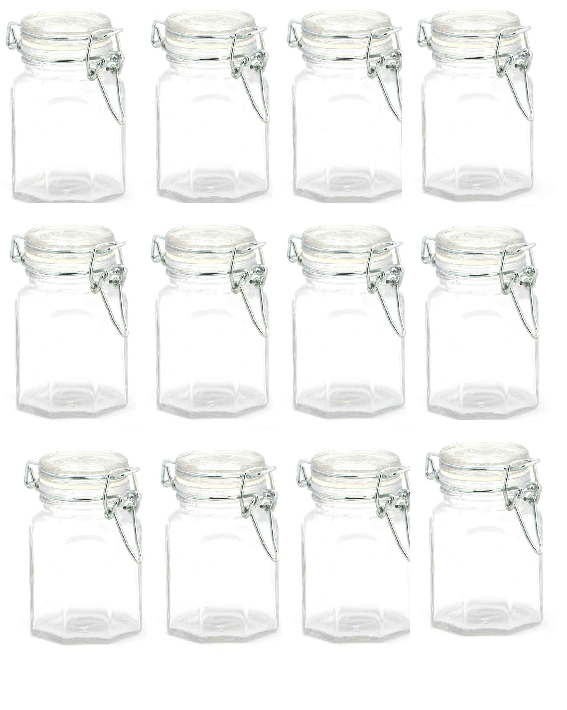 Premsons® Hexagon Glass Jars Clip Top Glass Canister Wide Mouth Storage Canister Jars For Masala,Spice,Food,aachar,Sugar,Bean Storage - 25 ml -Pack of 12