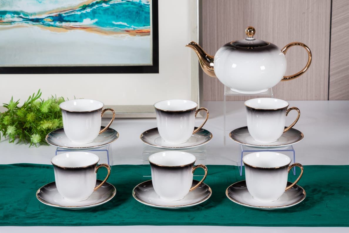 Premsons® High Tea Cup, Saucer & Teapot Set – Elegant Porcelain Tea Set for High Tea – Ombre Black