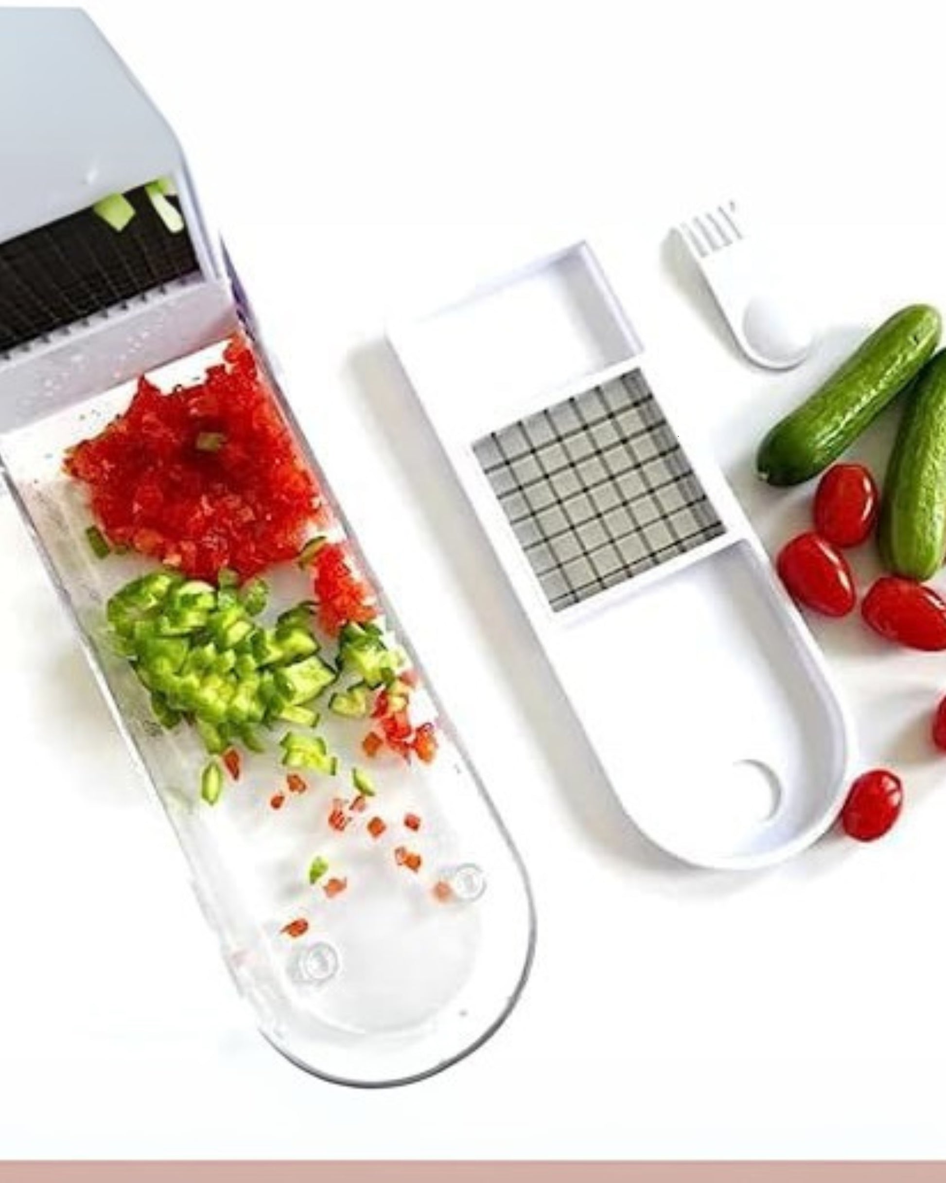 Make food prep faster and easier with this Multi-Function Vegetable & Fruit Chopper Set. Featuring interchangeable stainless steel blades, a large storage container, and a durable, user-friendly design, this kitchen essential saves time, effort, and space while delivering precise results every time.