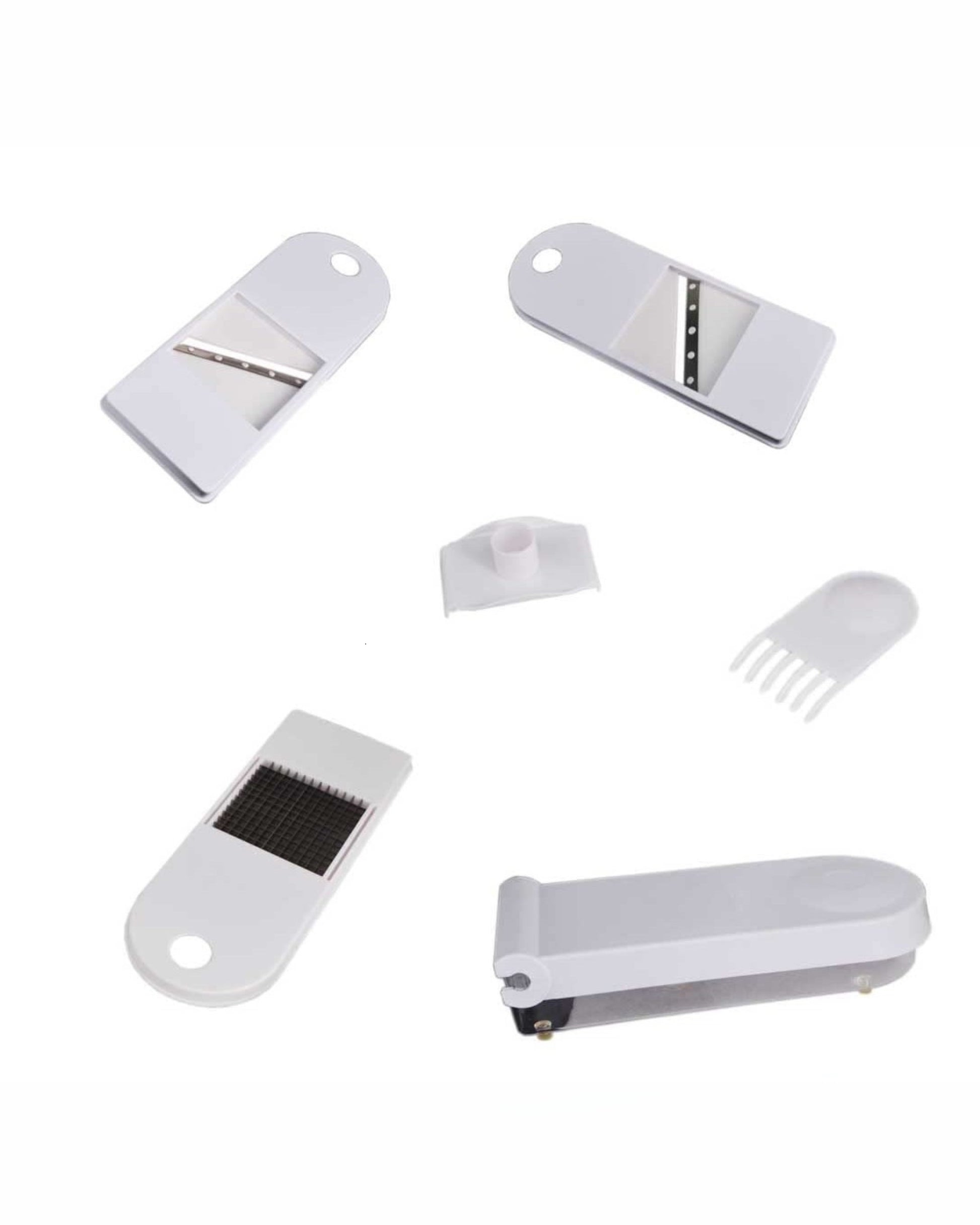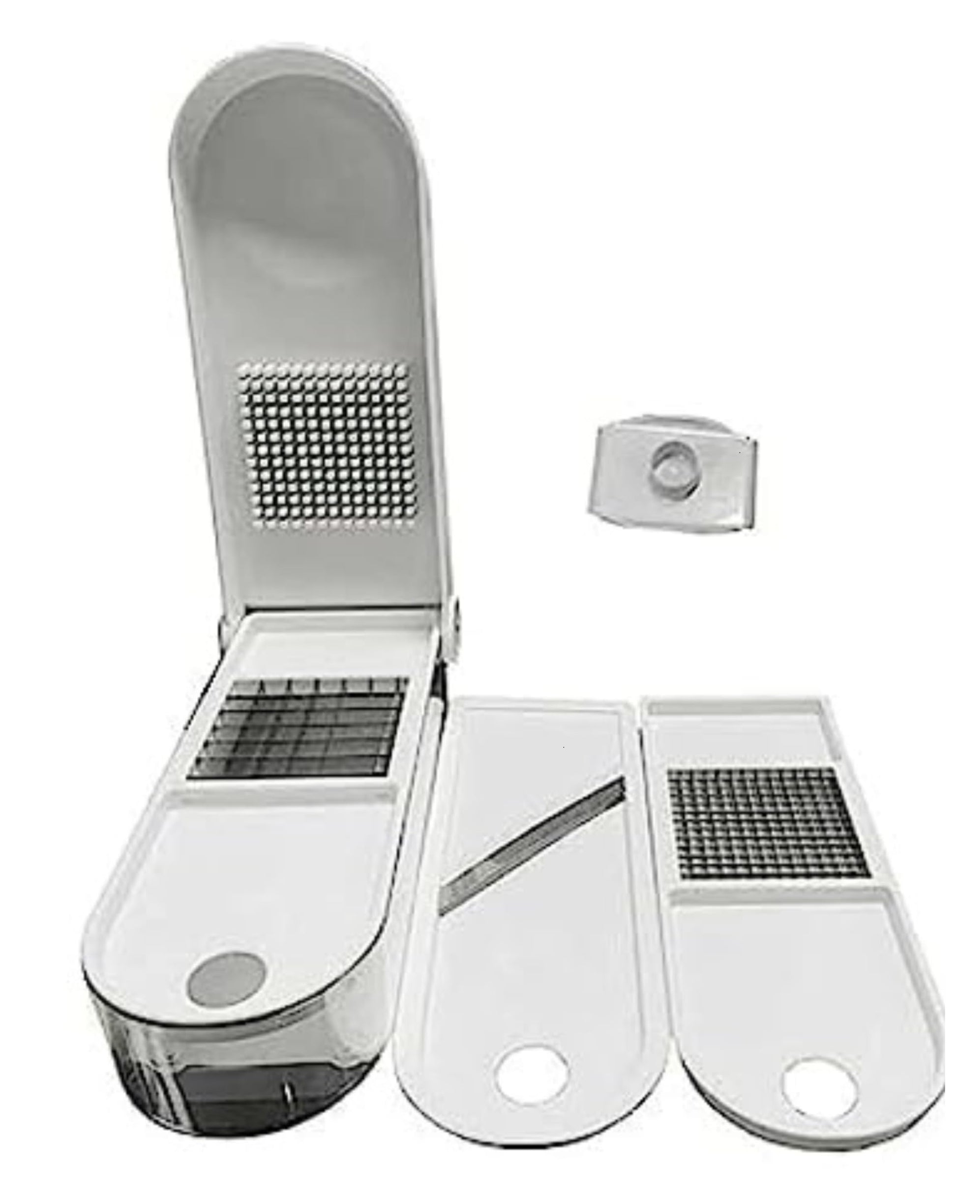 🔪 Interchangeable Blades – Multiple sharp stainless steel blades let you dice, slice, chop, and julienne effortlessly.