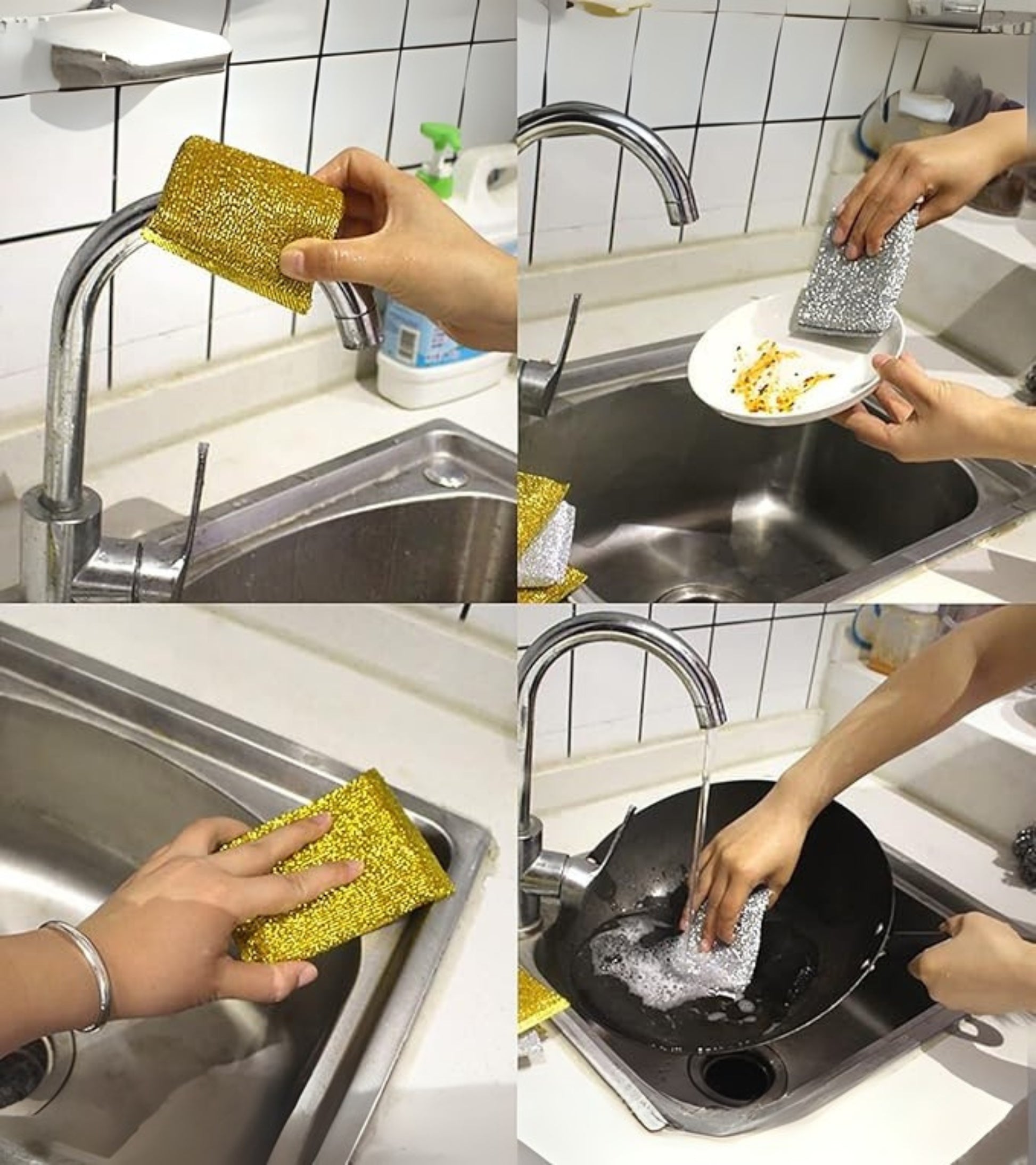 🧽 Pack of 3 Dual-Sided Sponges – Comes in elegant Gold & Silver for versatile cleaning tasks