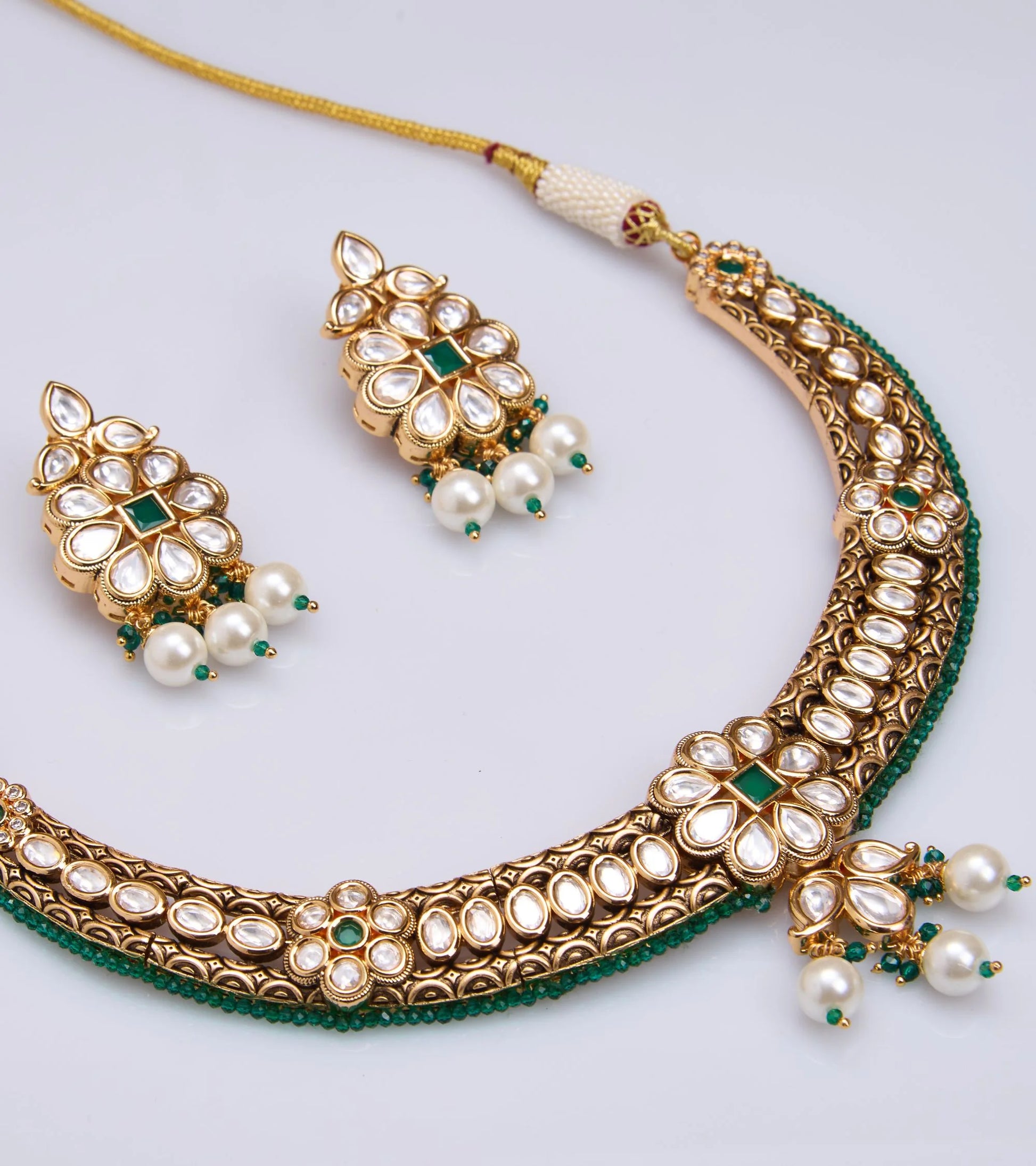 Premsons® Kundan Necklace Set with Earrings – Ethnic Polished Wedding Jewellery