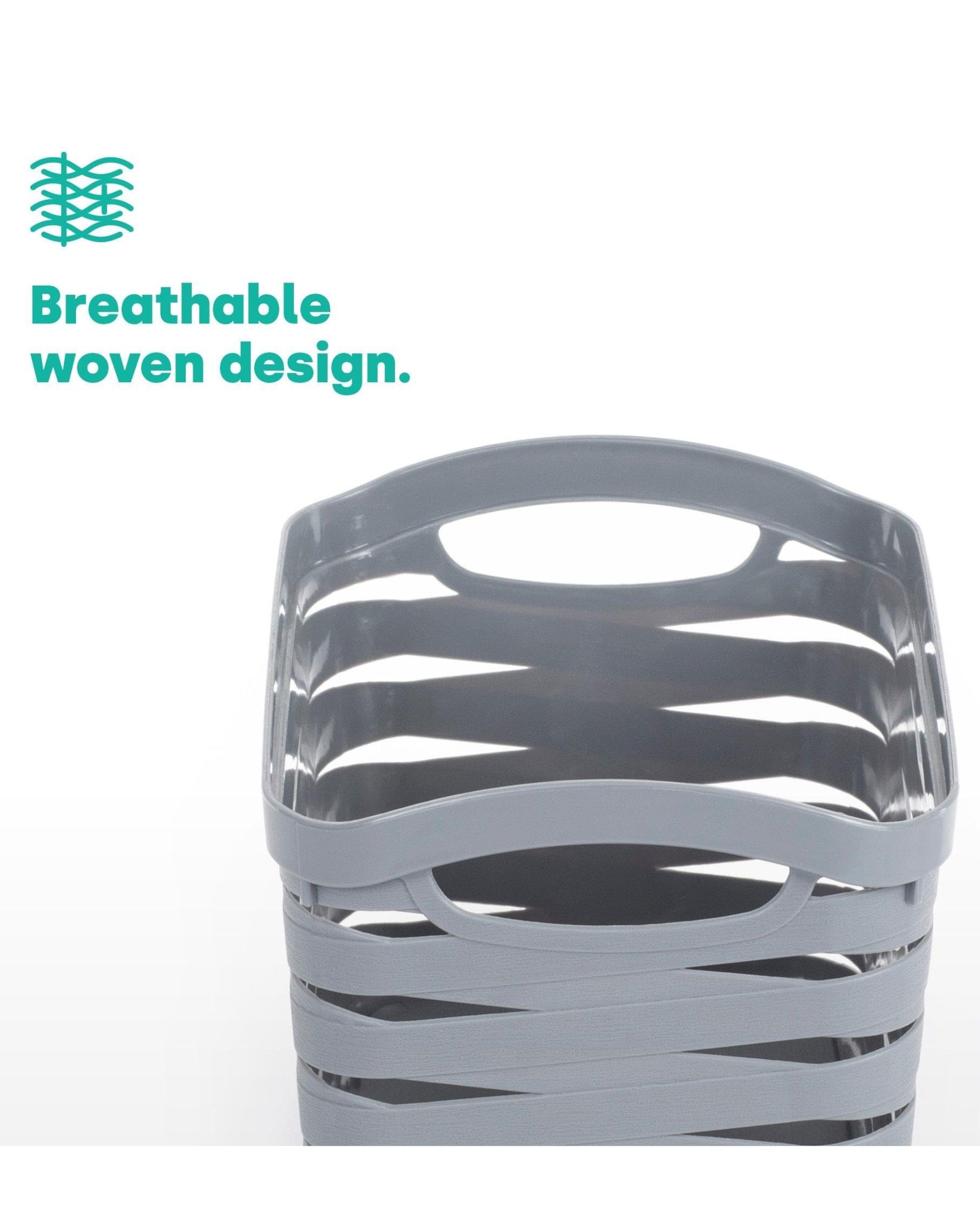 Keep your space tidy and stylish with the Premsons® Medium Grey Organizer Basket. Featuring a modern hollow design and convenient handles, it's perfect for organizing essentials in the bathroom, kitchen, closet, or bedroom.