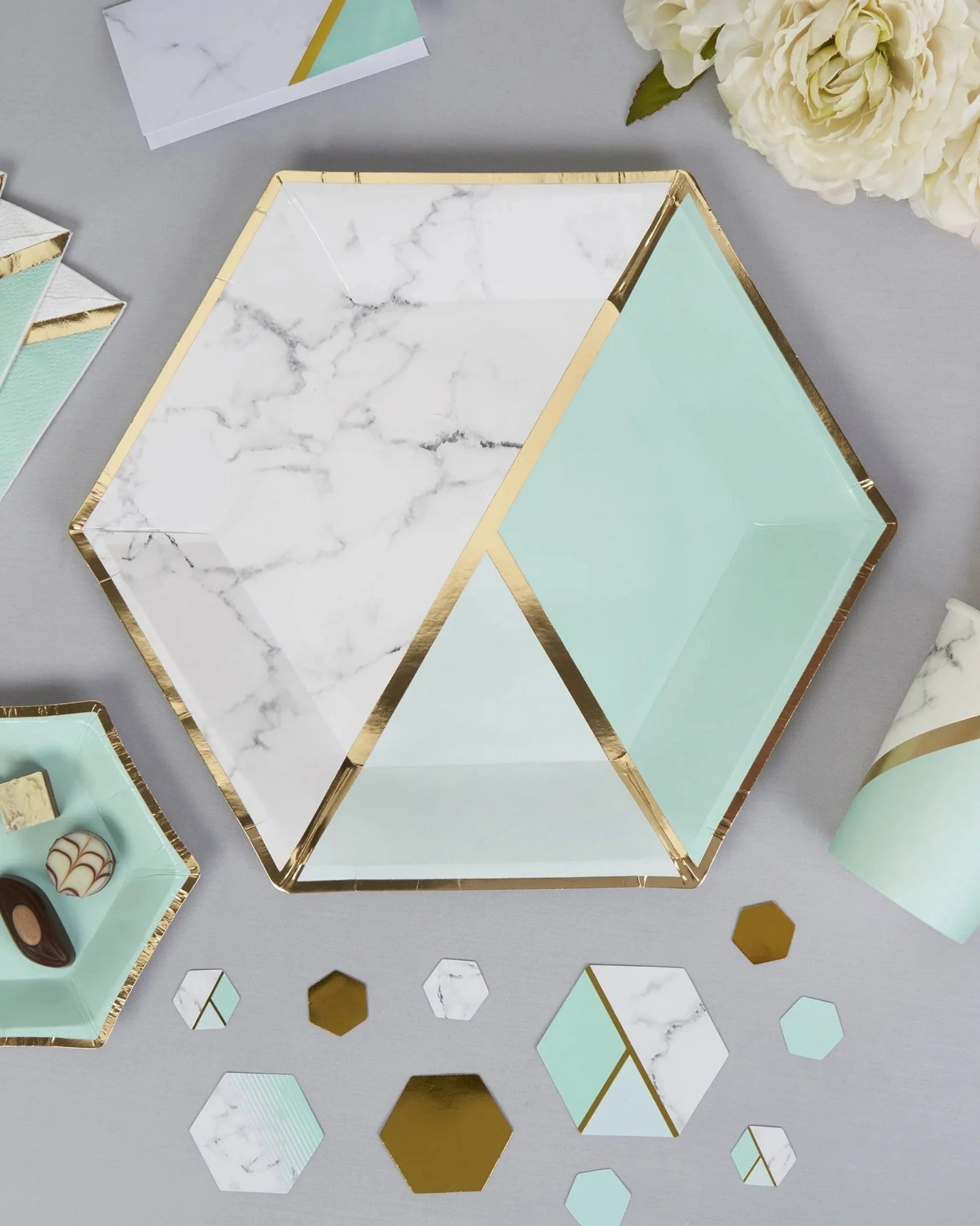 Premsons® 10-Inch Mint Green Colourblock with Gold Large Paper Plates - Birthday, Wedding, Showers Disposable Decorative Party Plates - Pack of 10