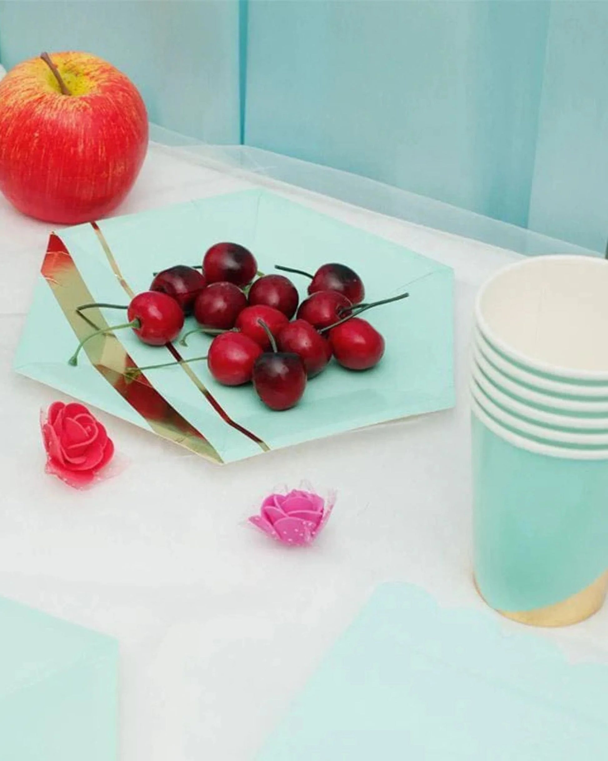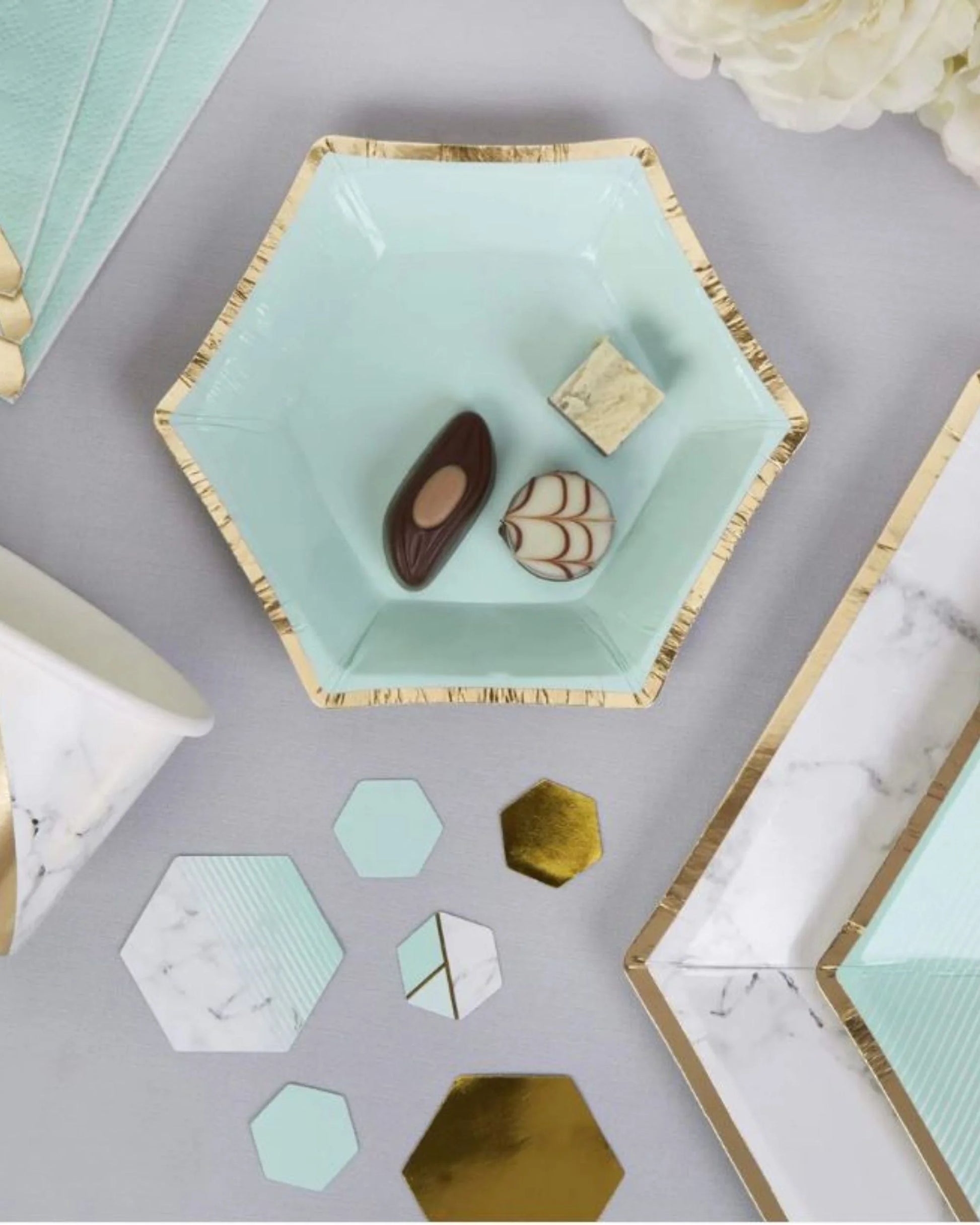 Premsons® Mint Green with Gold Large Paper Plates - Birthday, Wedding, Showers Disposable Decorative Party Plates - Pack of 10