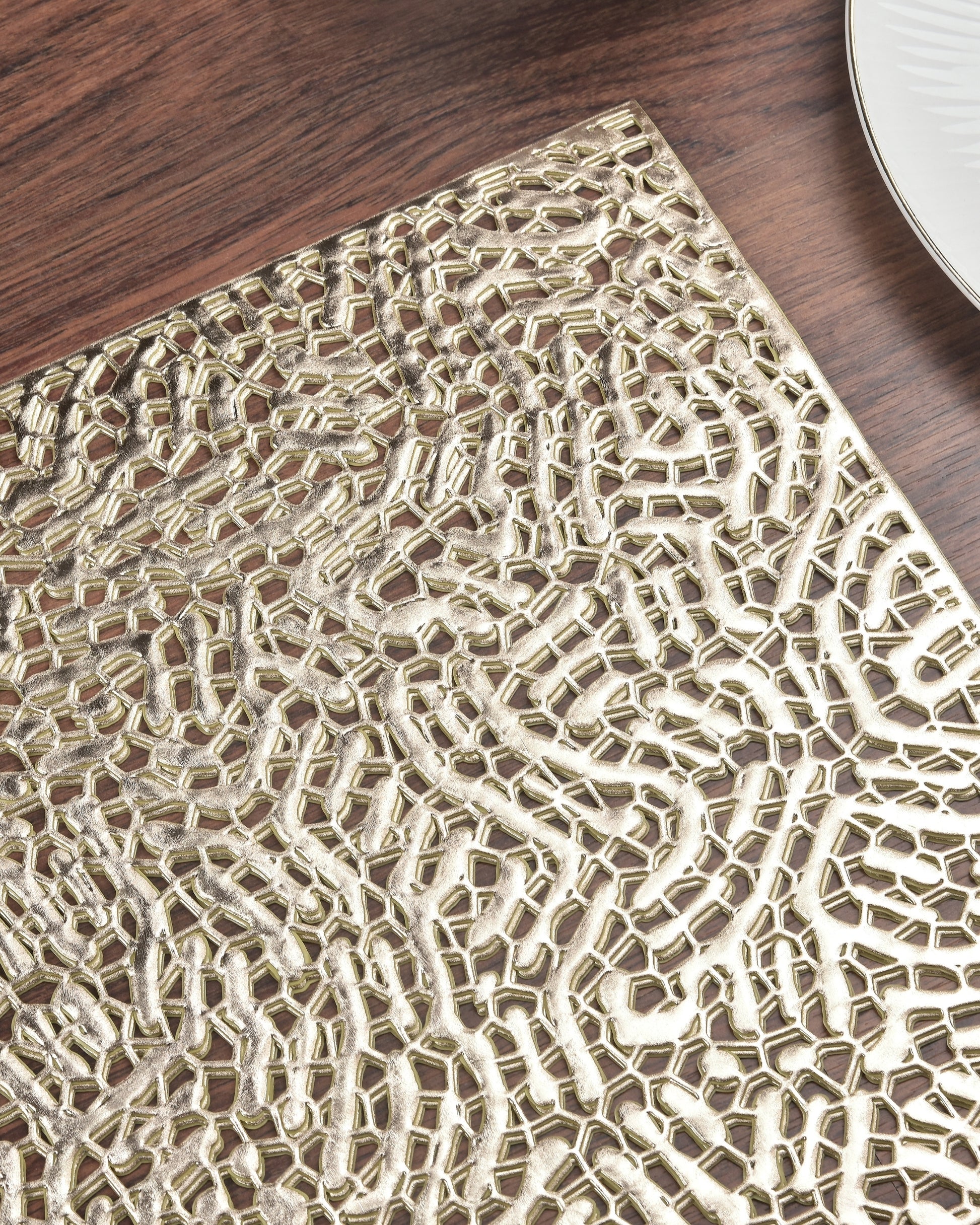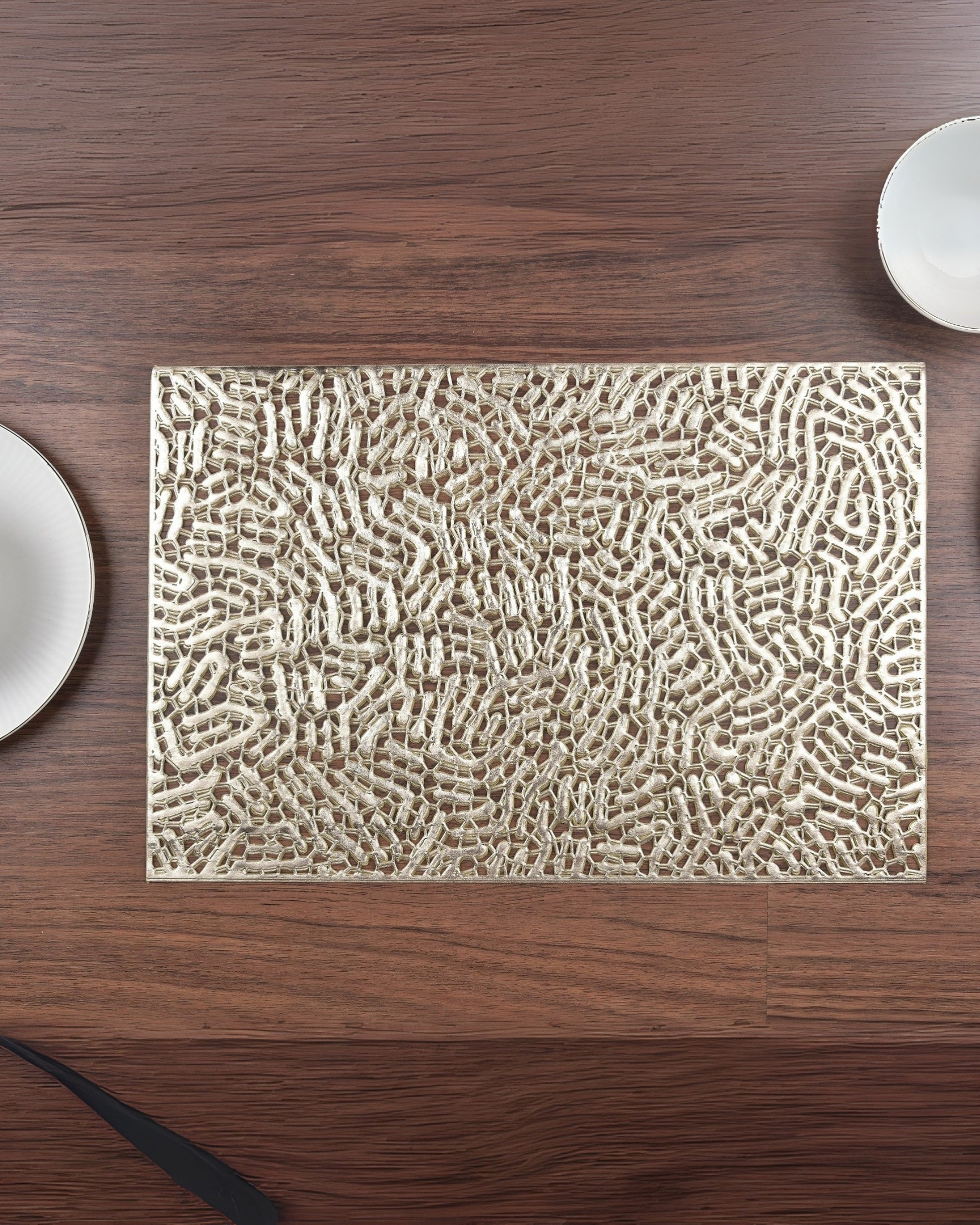 Premsons® Golden Metallic Hollow Design Rectangle Placemat – Washable, Wipeable, Non-Slip & Stain-Resistant Table Mat for Dining, Kitchen, Wedding & Party Décor