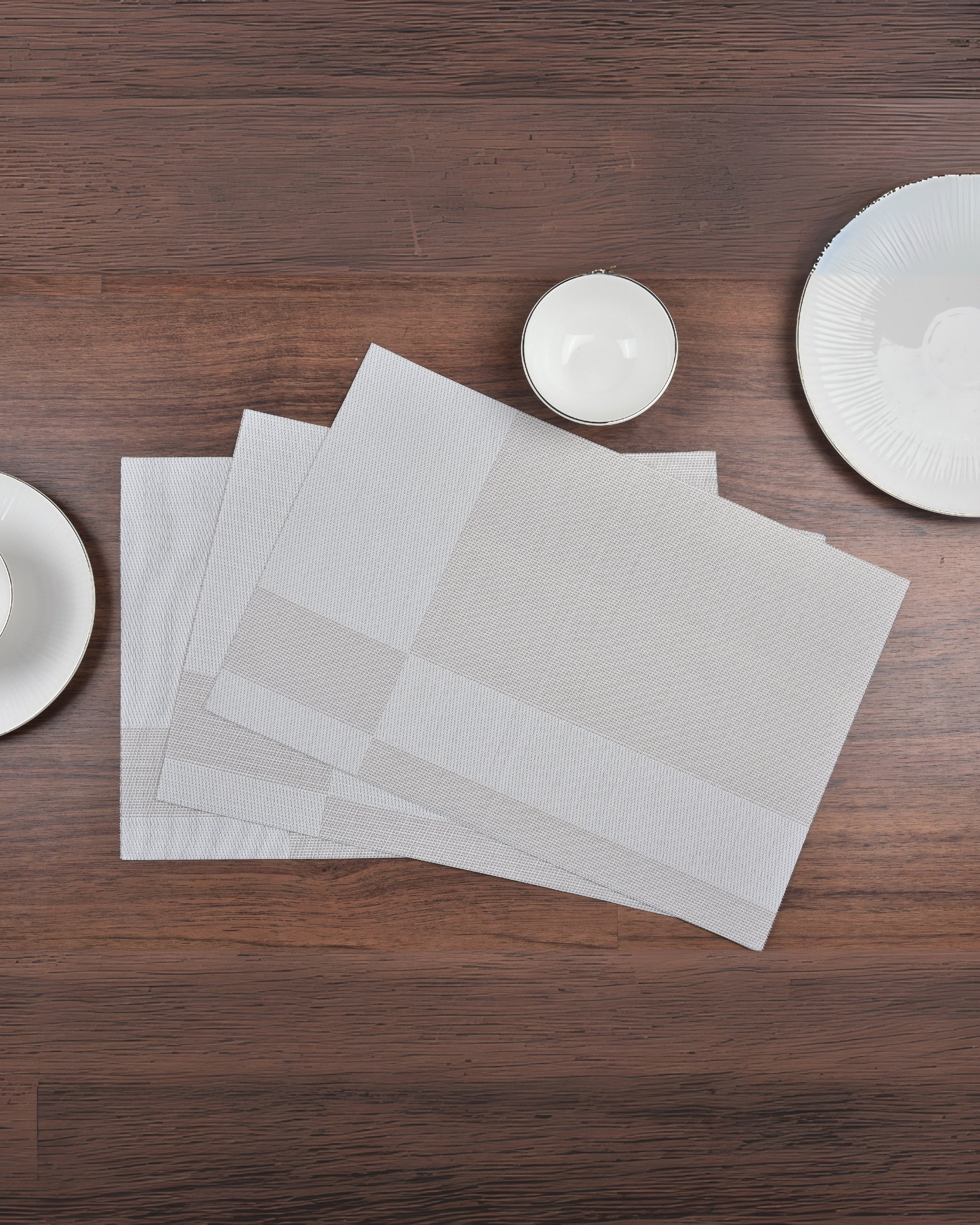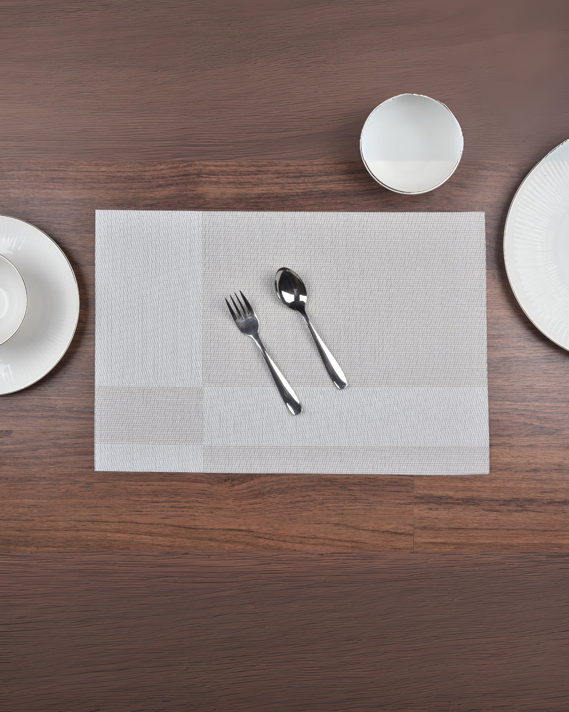 Give your table a modern, minimalist upgrade with Premsons® Grey Rectangle Metallic Placemats. Washable, non-slip, and stain-resistant—these durable mats combine style and function for everyday dining or elegant events.