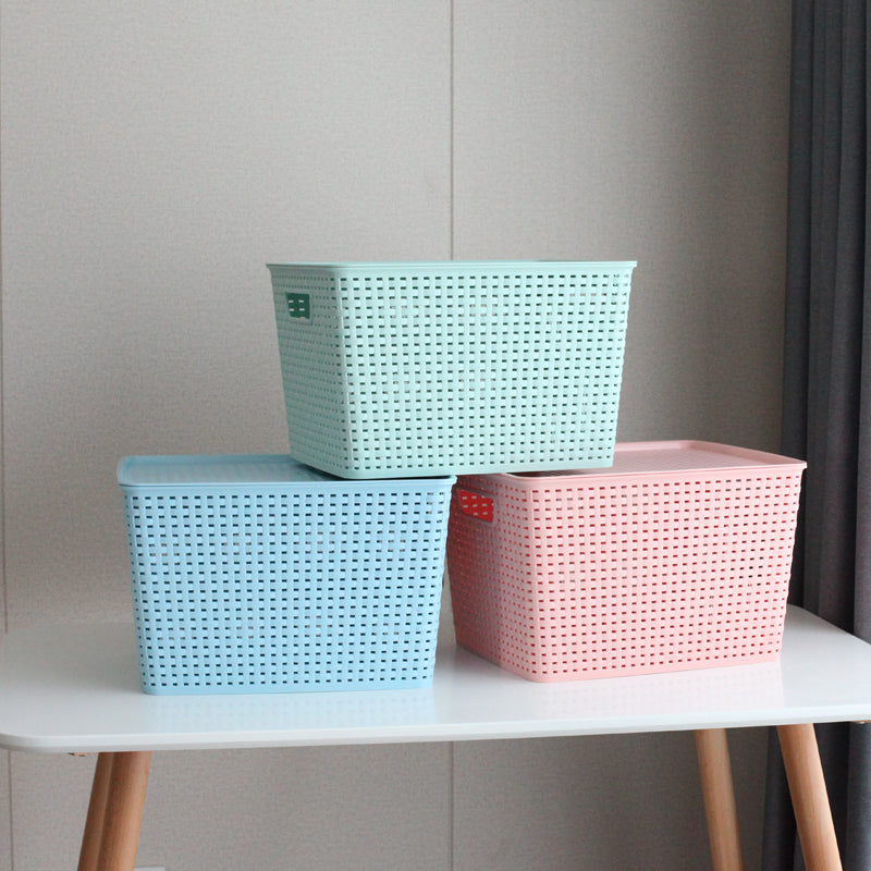 p your home or office neat and clutter-free with the Premsons® Rattan Style Plastic Storage Basket. With a stylish woven design, secure lid, and built-in handles, it's perfect for storing clothes, toys, toiletries, pantry items, and more. Lightweight, stackable, and durable—ideal for every room.