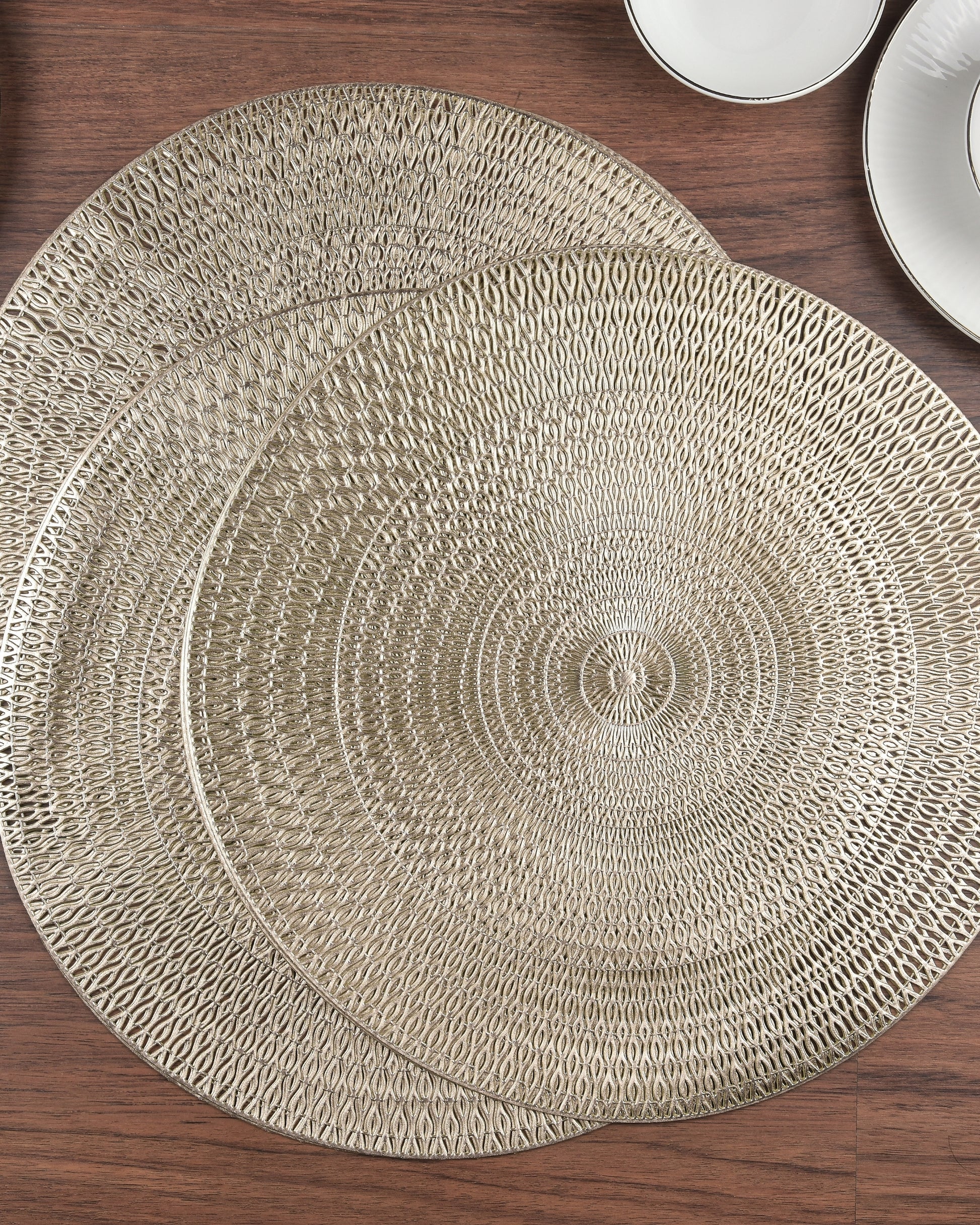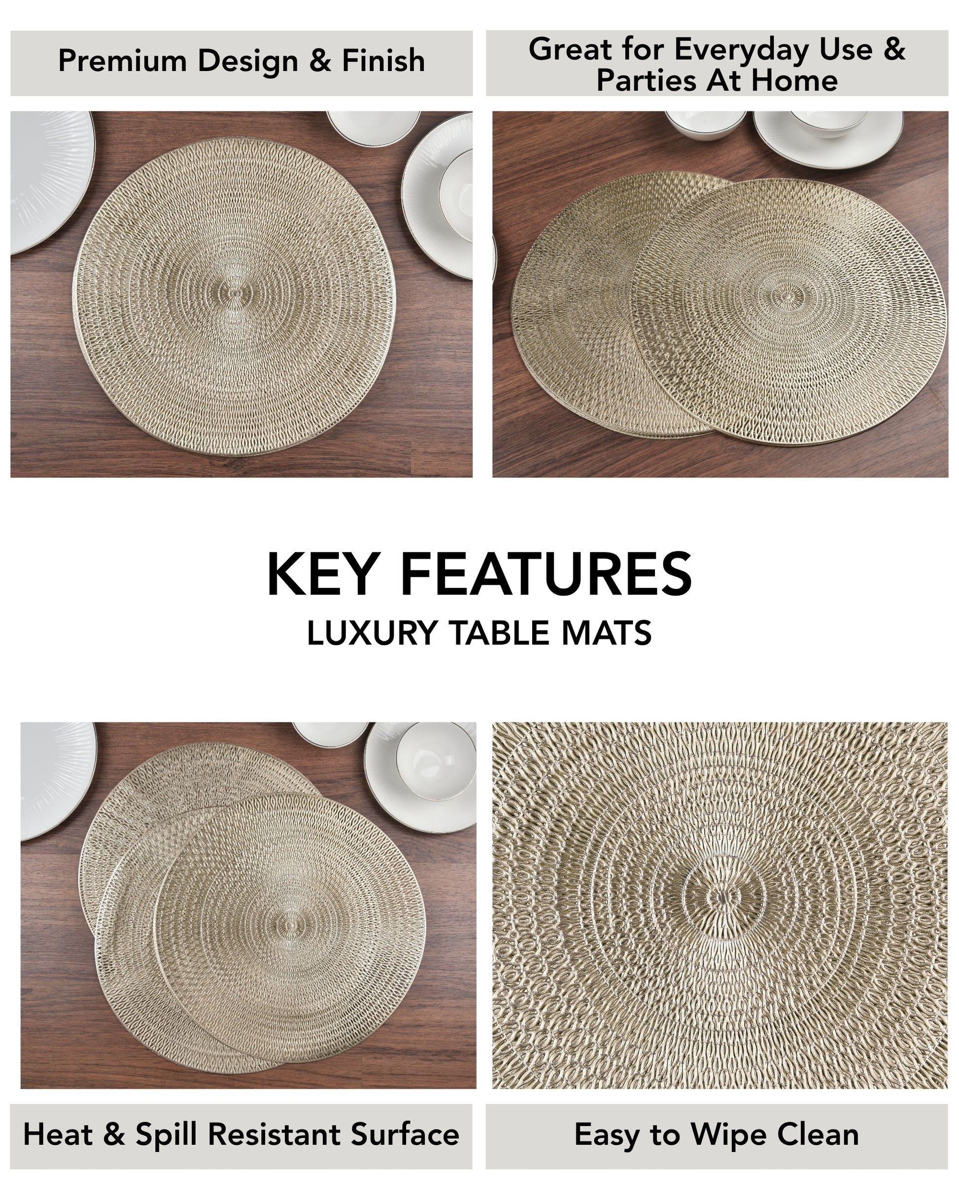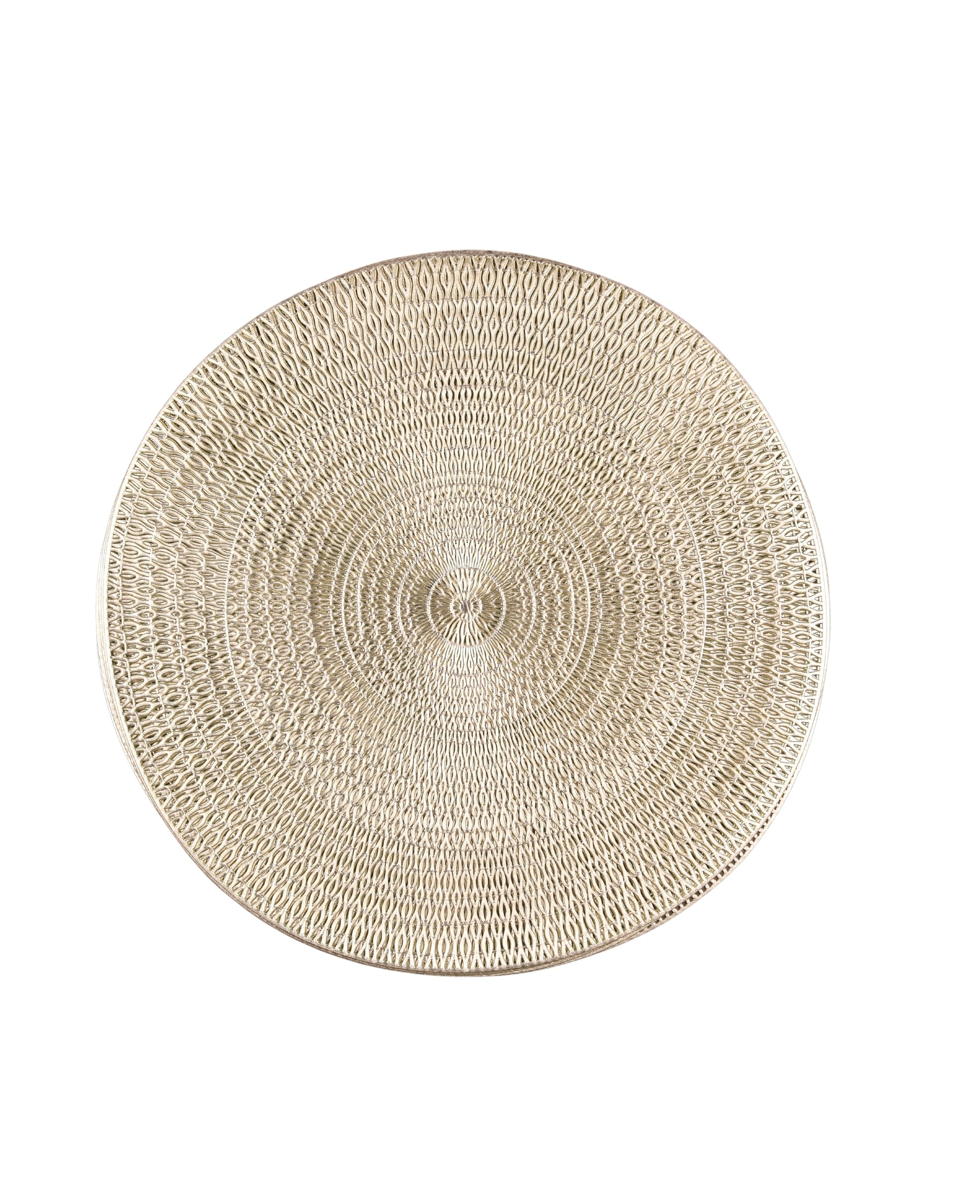 Premsons® Round Table Mat – Textured Loop Metallic Placemat | Washable, Wipeable, Non-Slip & Heat-Resistant | Decorative Table Mat for Dining, Kitchen, Wedding & Party Décor – Champagne Beige