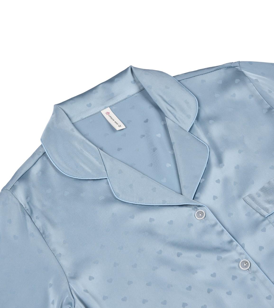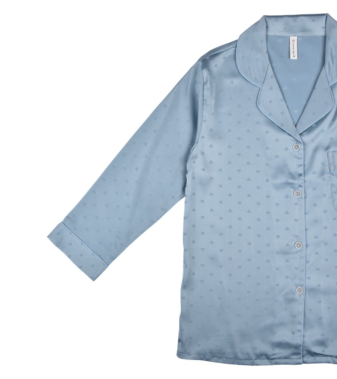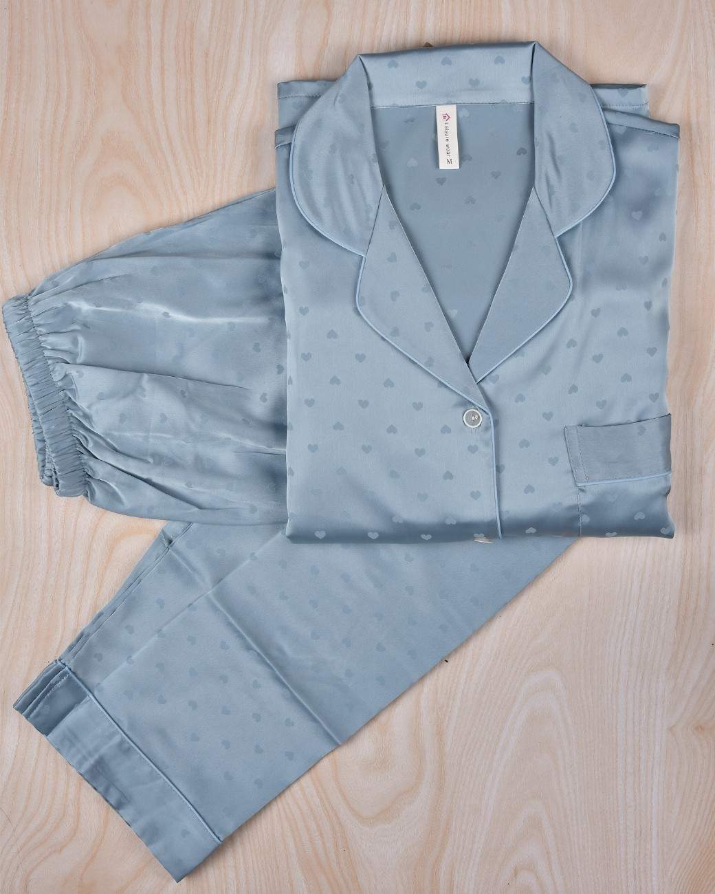 Premsons® Satin-Smooth Silk Nightwear Set - Relaxed Fit Pajamas with Button Shirt - Blue Hearts Print