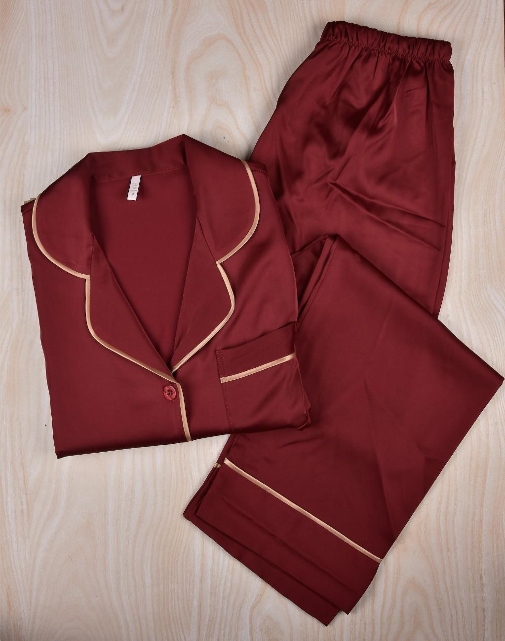 Premsons® Satin-Smooth Silk Nightwear Set - Relaxed Fit Pajamas with Button Shirt with Lining