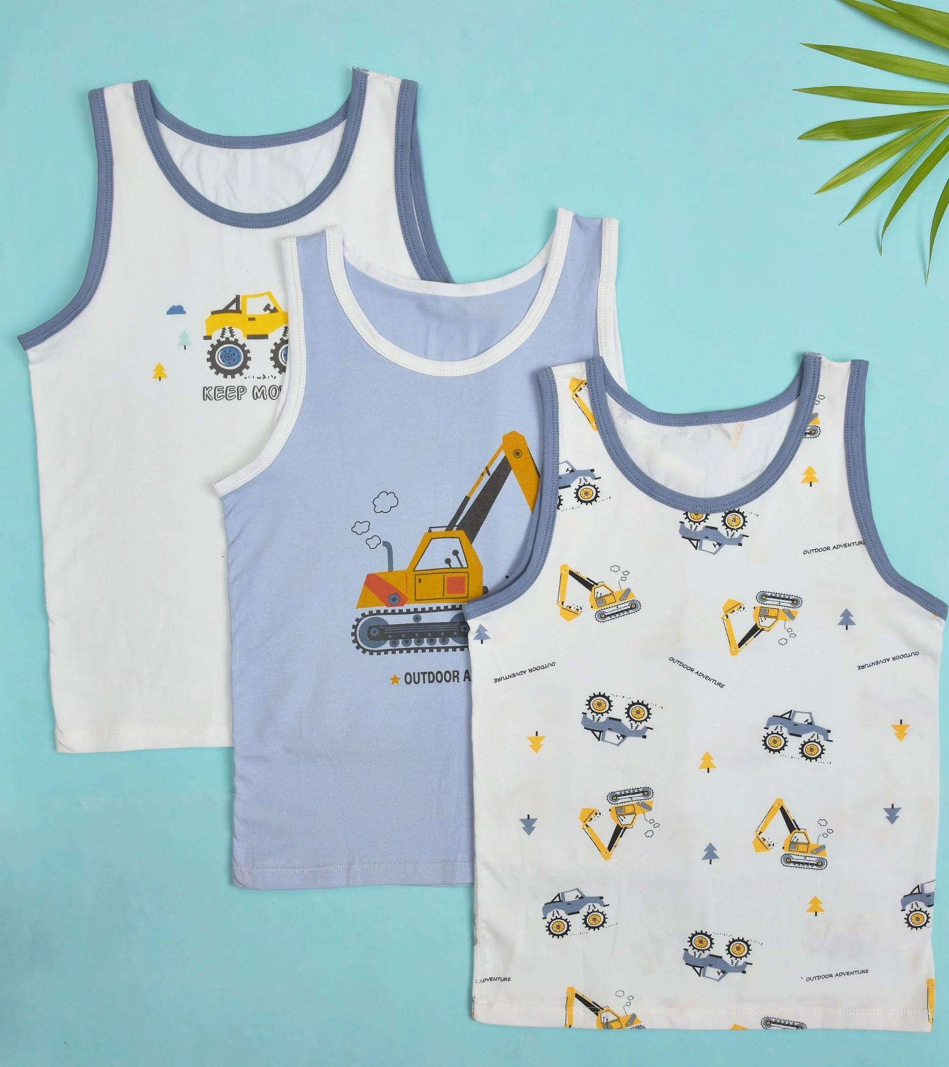 Premsons® Set of 3 Boys’ Vests – Colourful Truck Print, Lightweight & Cool